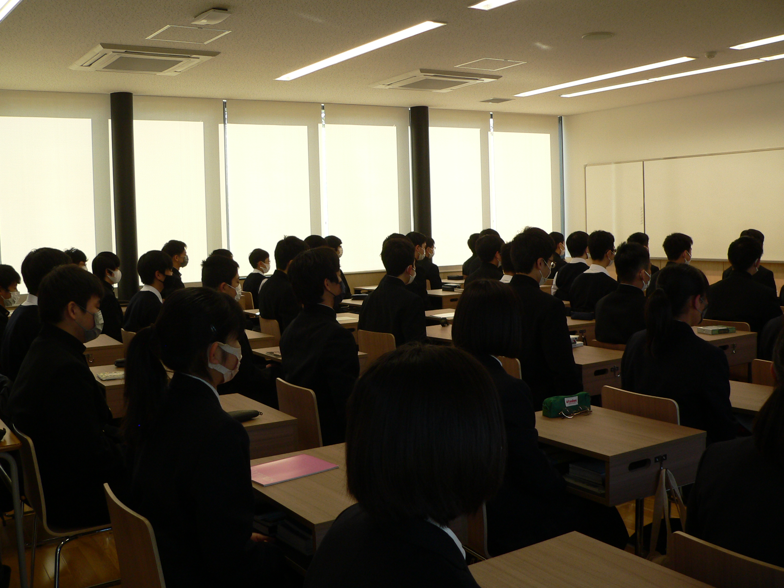 高ⅠE組の朝のHRの様子です。緊張がまだ続いています。
