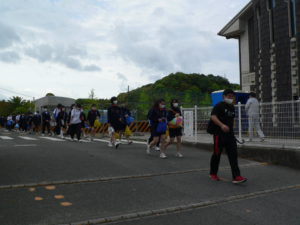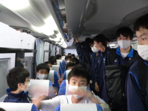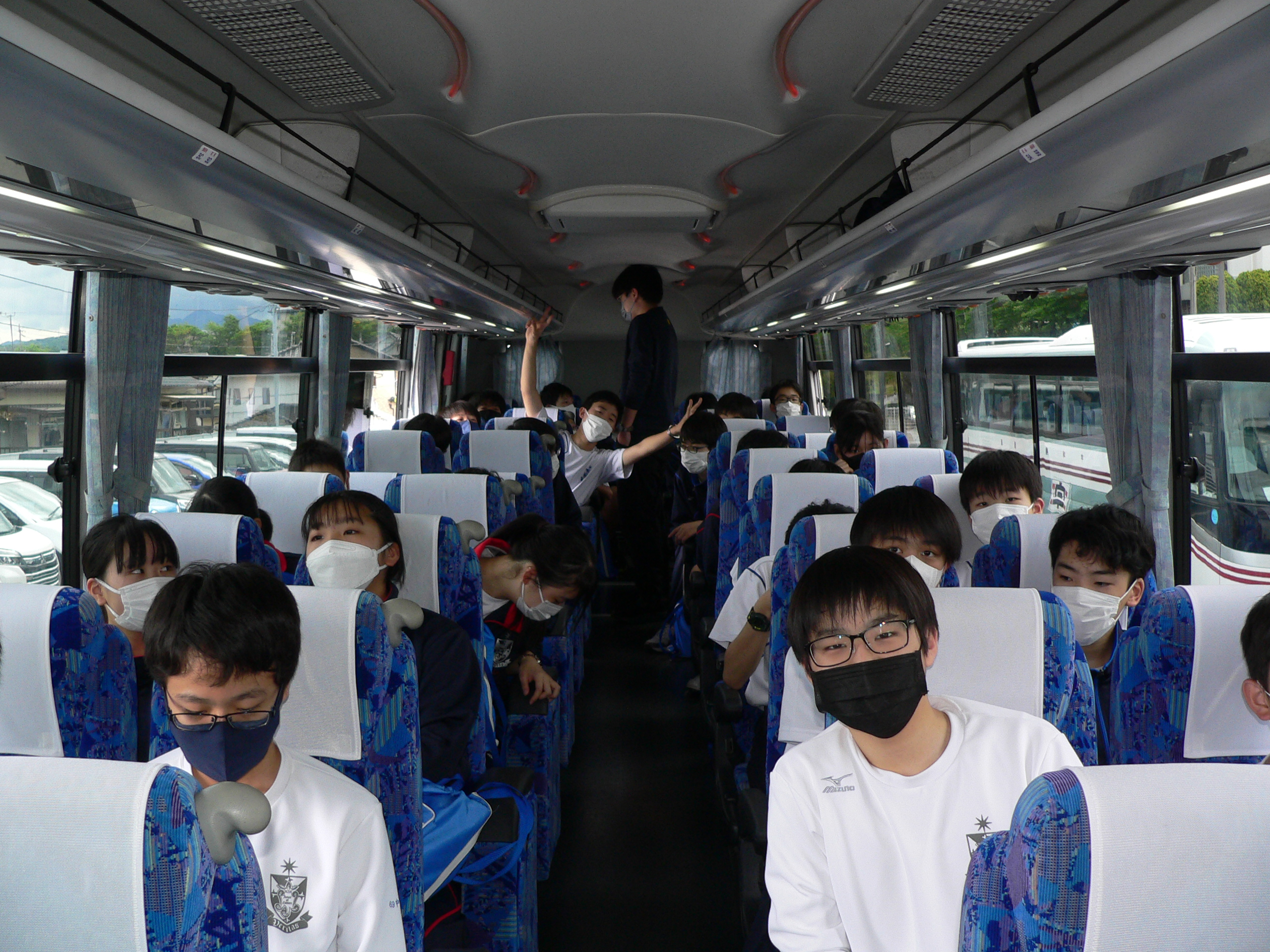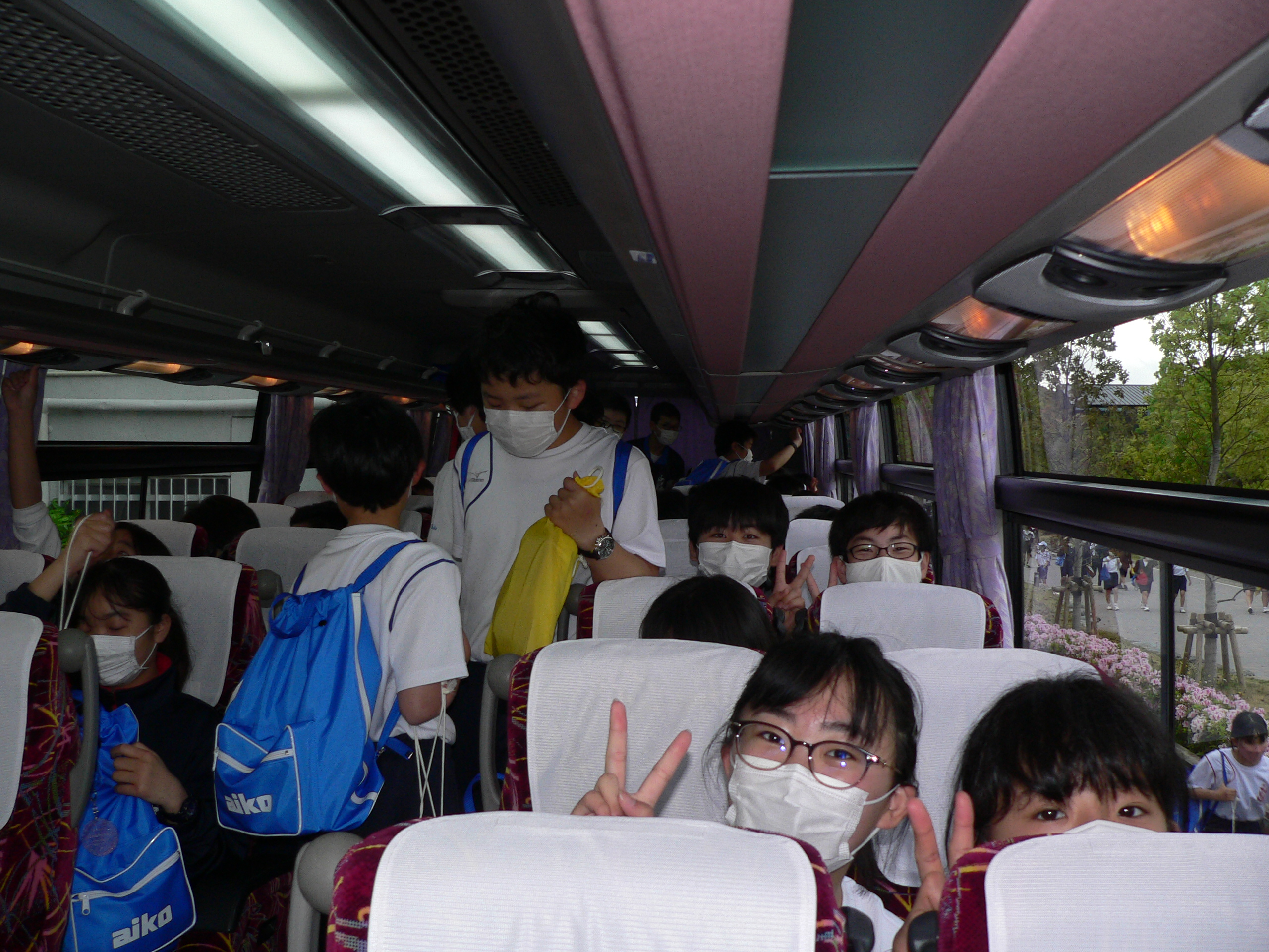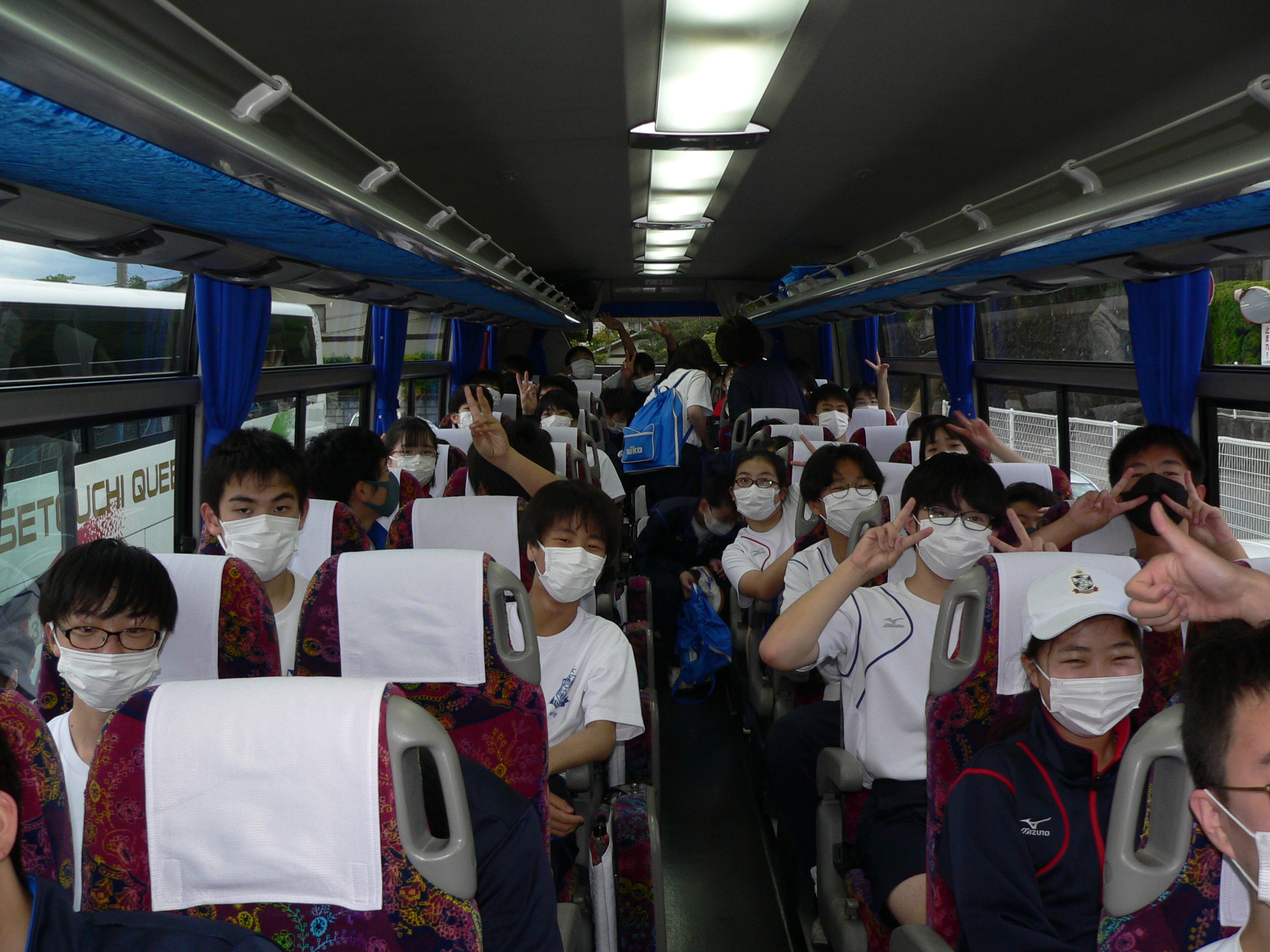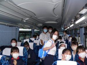 朝のホームルームを終えて、駐車場で待つバスへ。