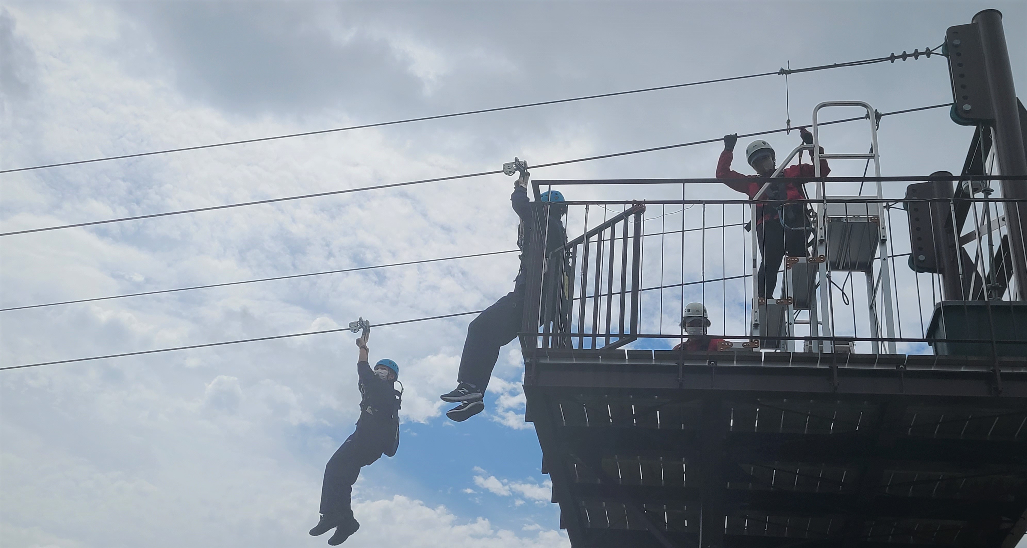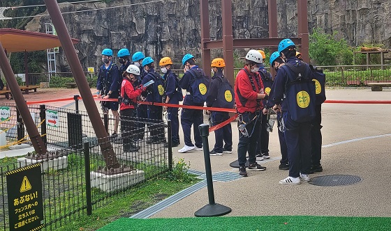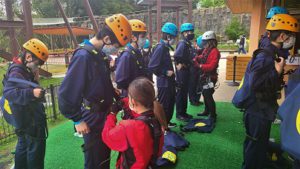 高ⅠEの生徒たちは,今回の遠足で,とべ動物園とえひめこどもの城を結ぶ「ジップライン」を体験しました。