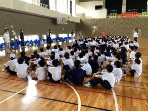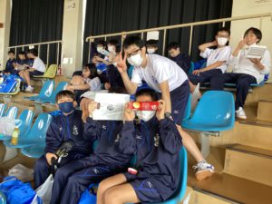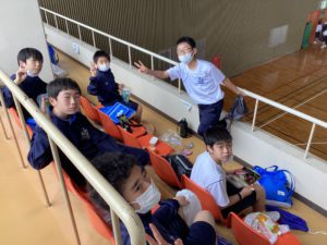 午後は雨が降ってきたので、今治市大西体育館に移動して昼食です!