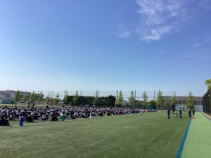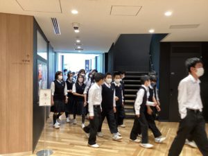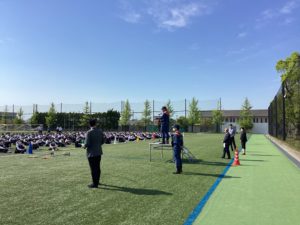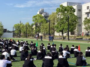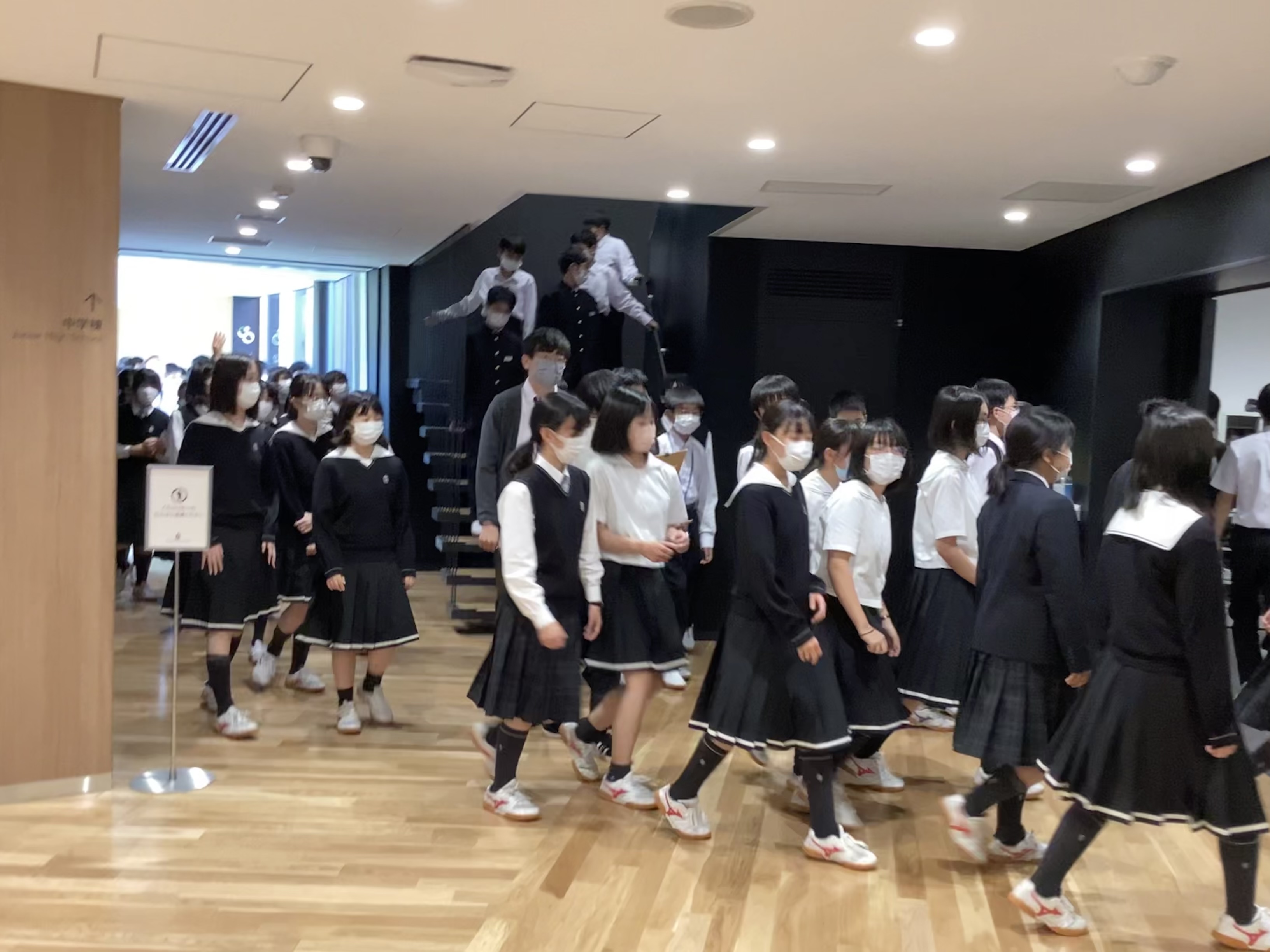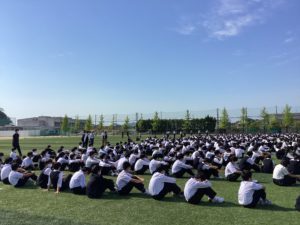 5/17(火) 新校舎になって初めて、中学生の避難訓練が行われました。