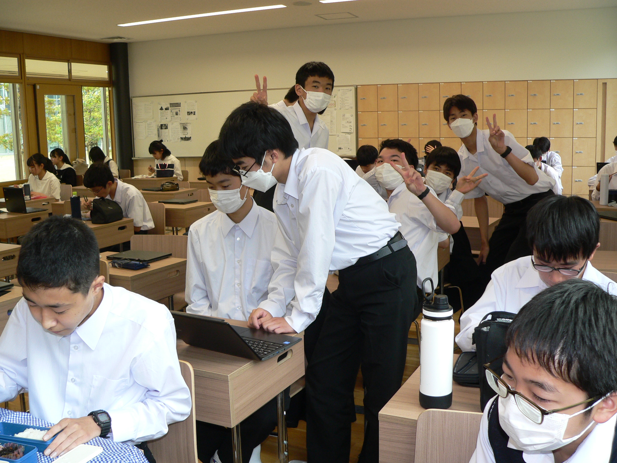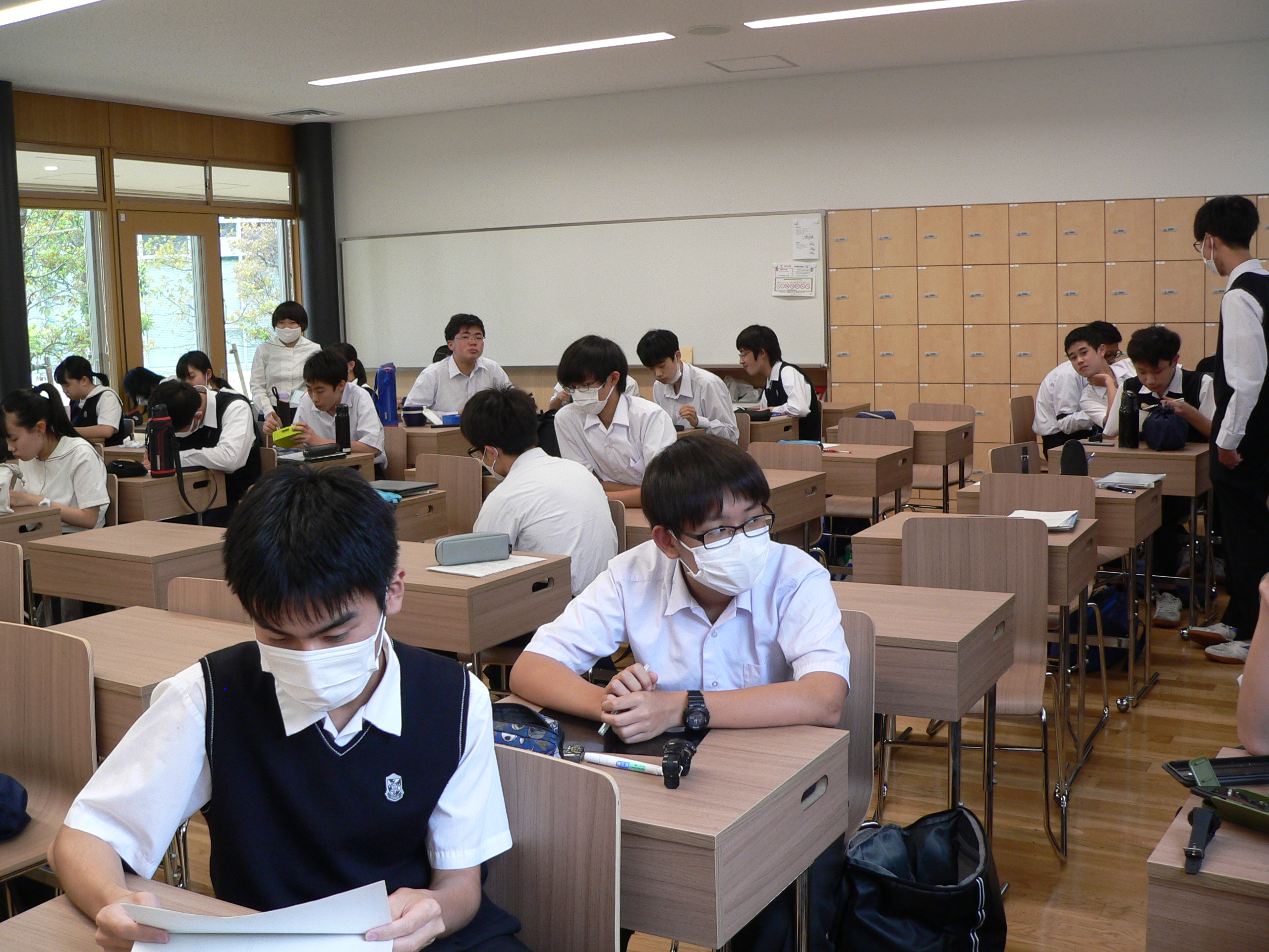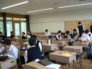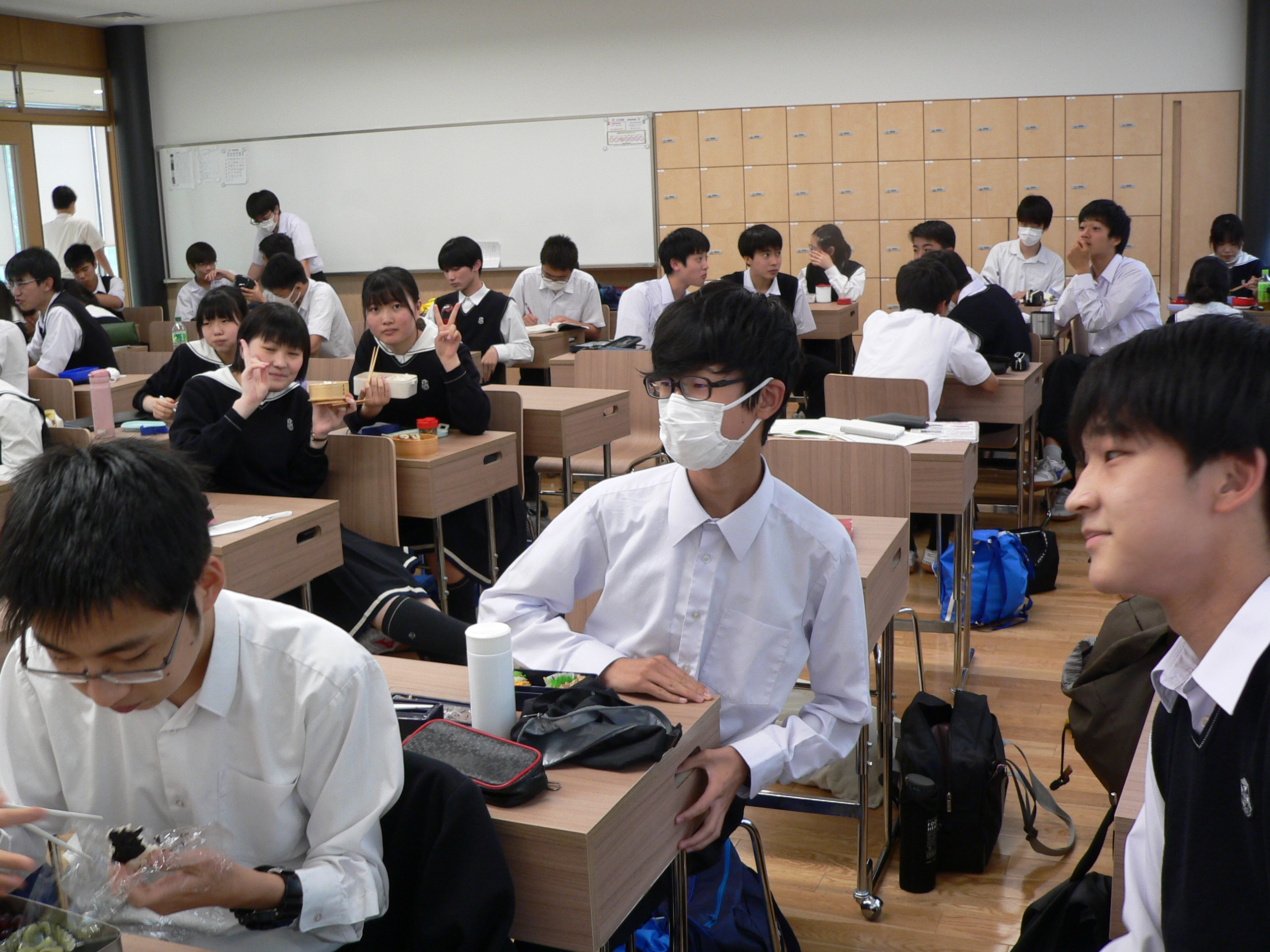 高校Ⅰ年生の昼休みの教室を訪問しました。