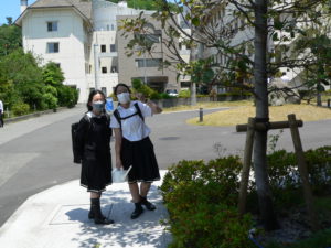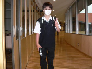 今朝一番早く登校した中1生です。