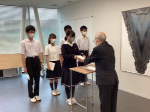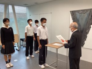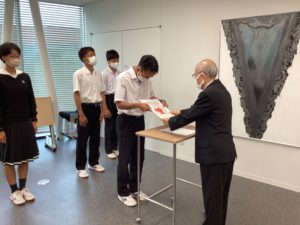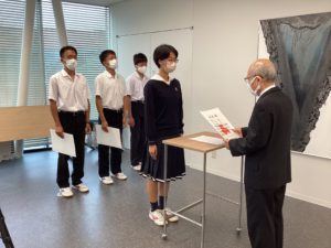 7時間目の中高合同集会で、たくさんの生徒が表彰されました。