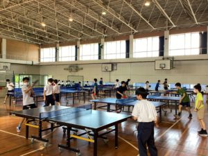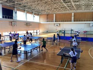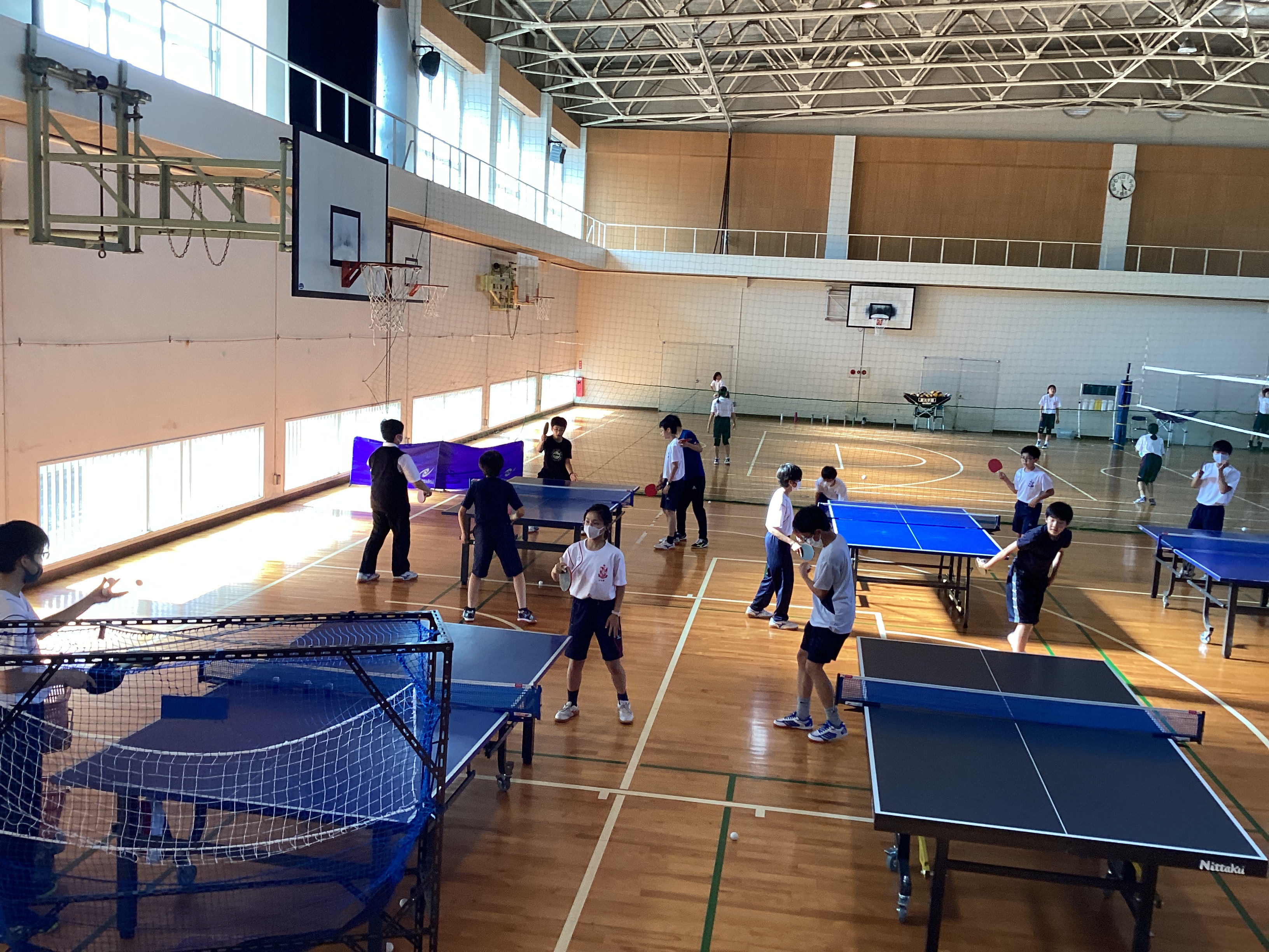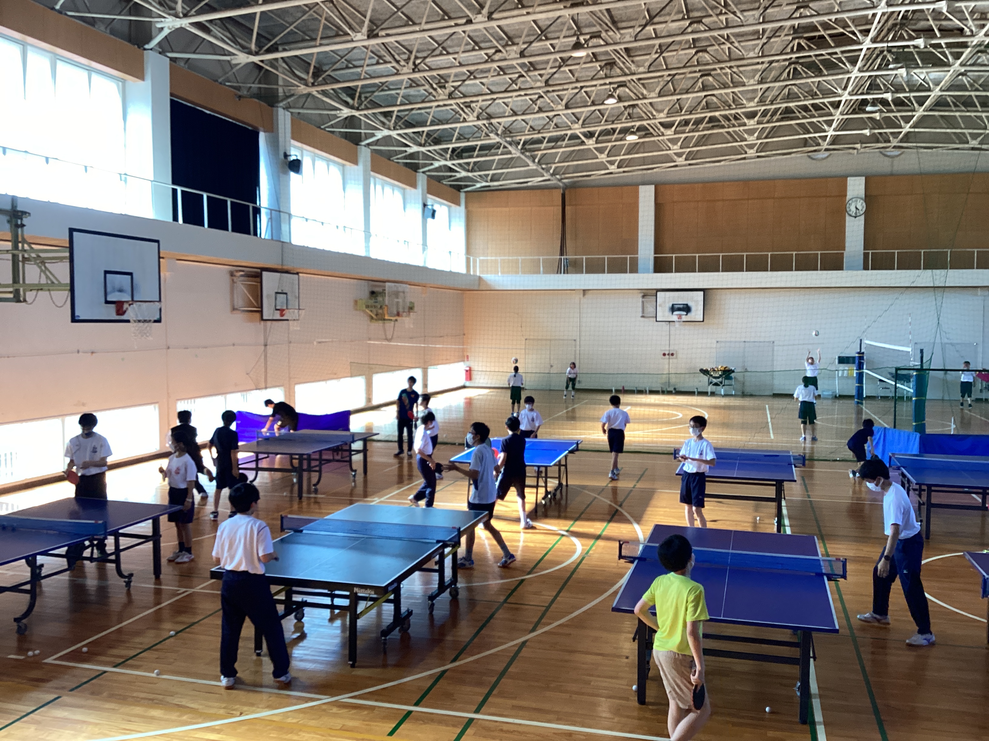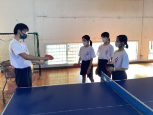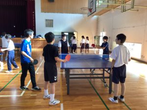 素振りの後は、中1生もフロアに降りて、球を打ちます。