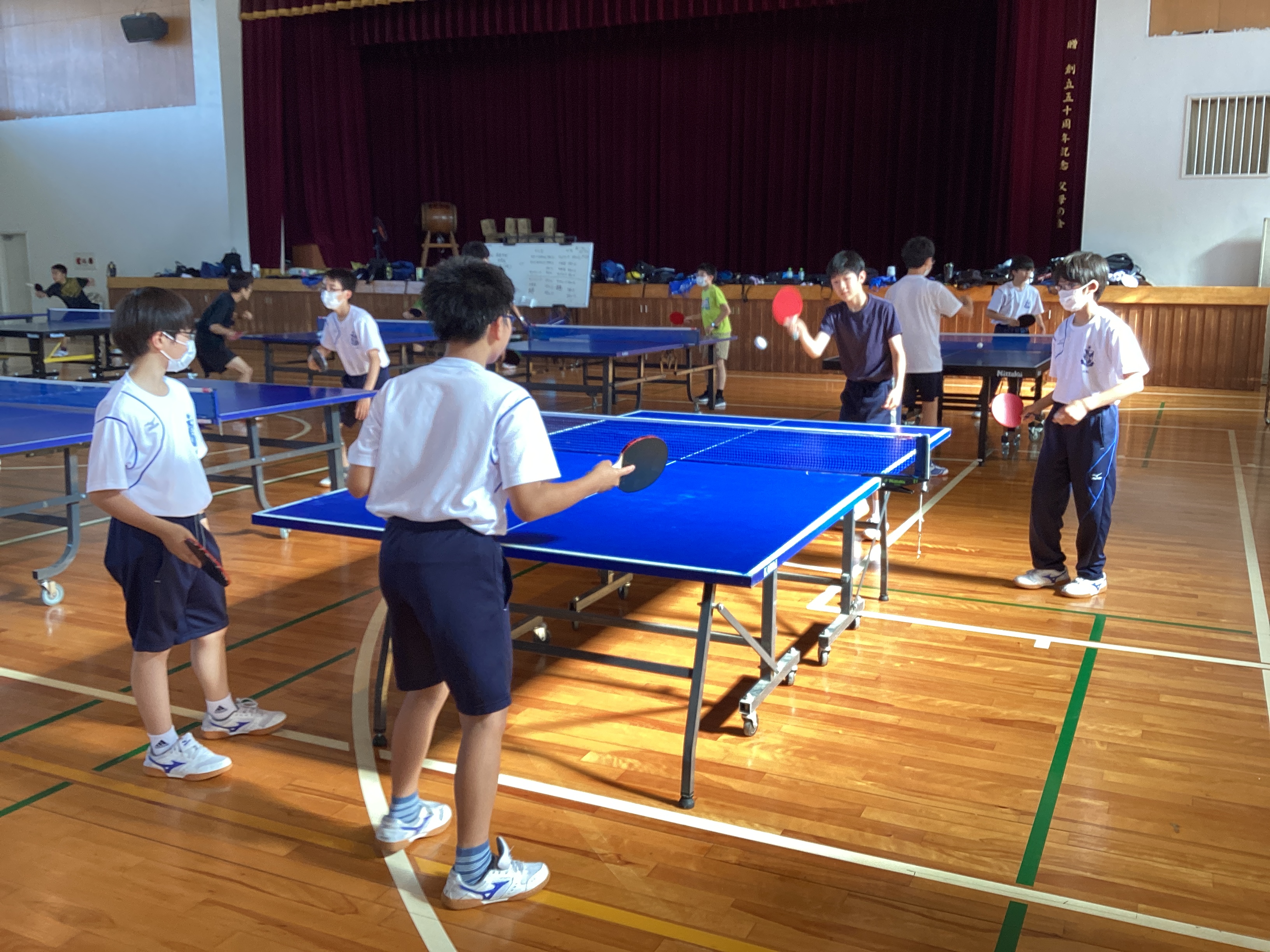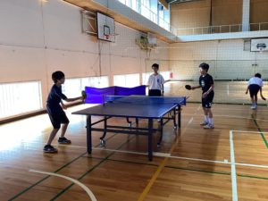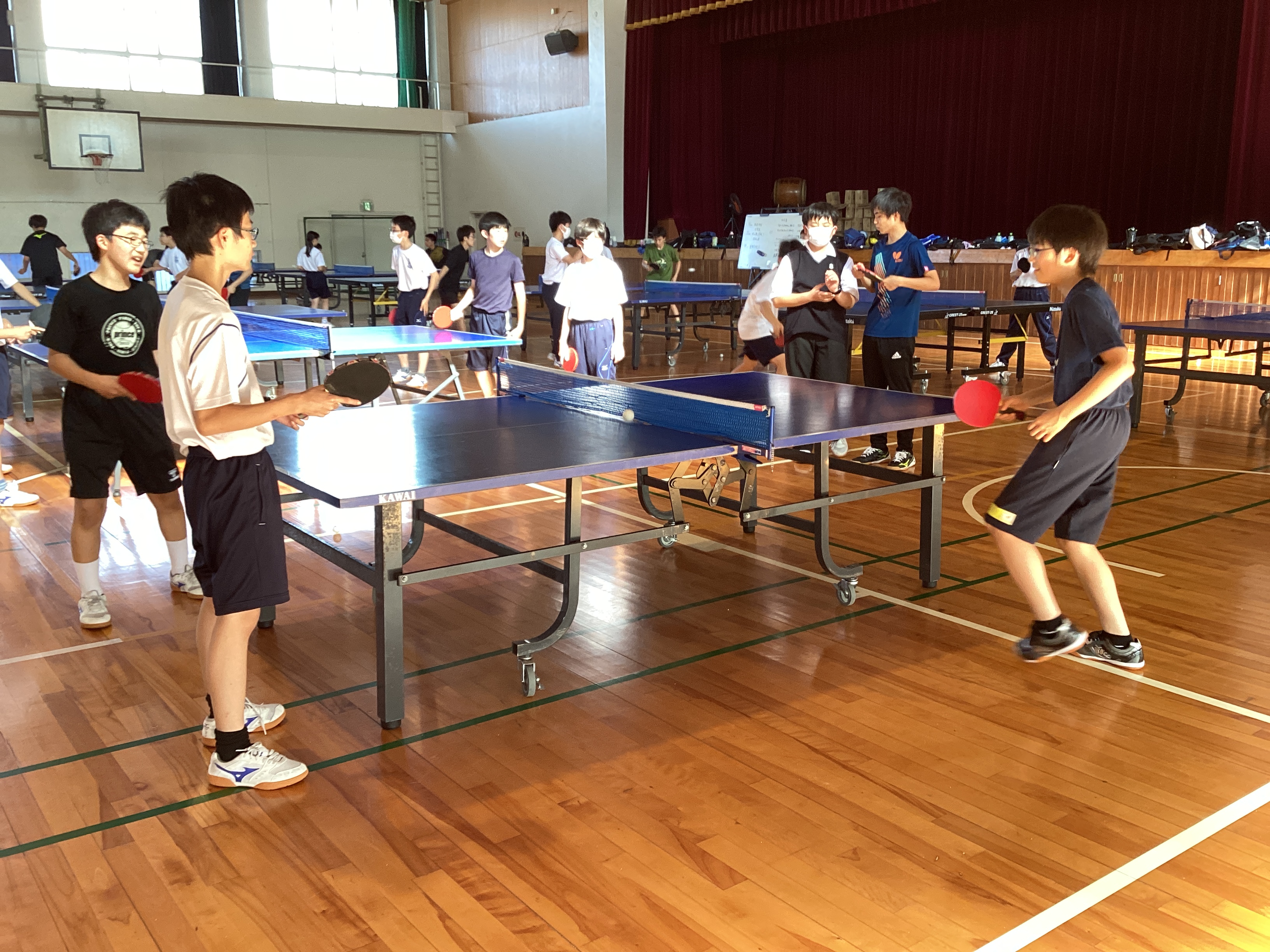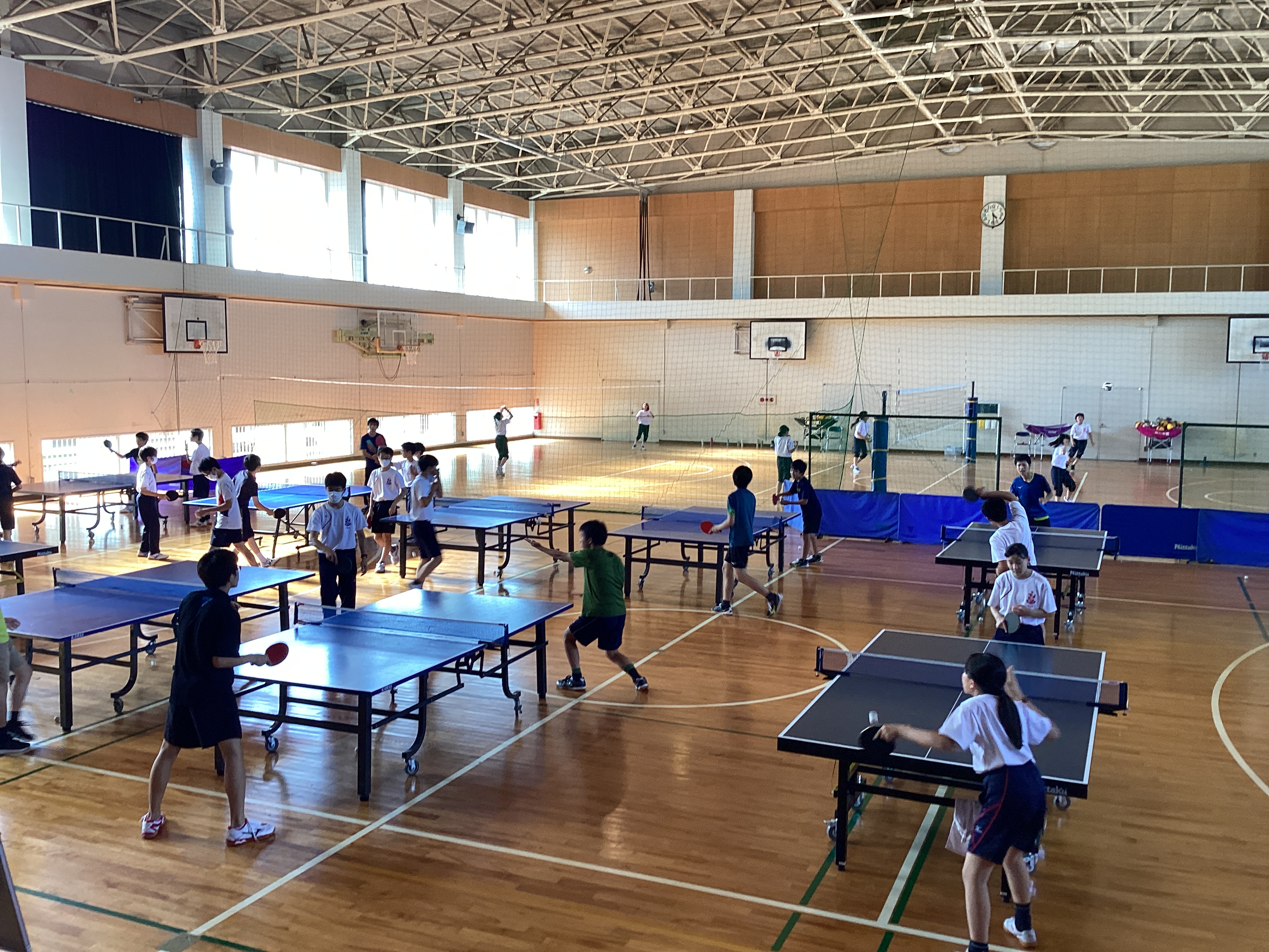 素振りの後は、中1生もフロアに降りて、球を打ちます。