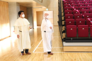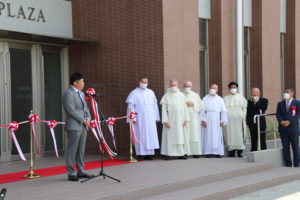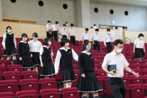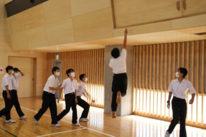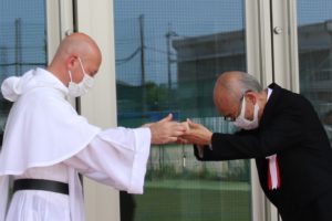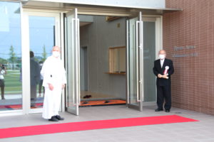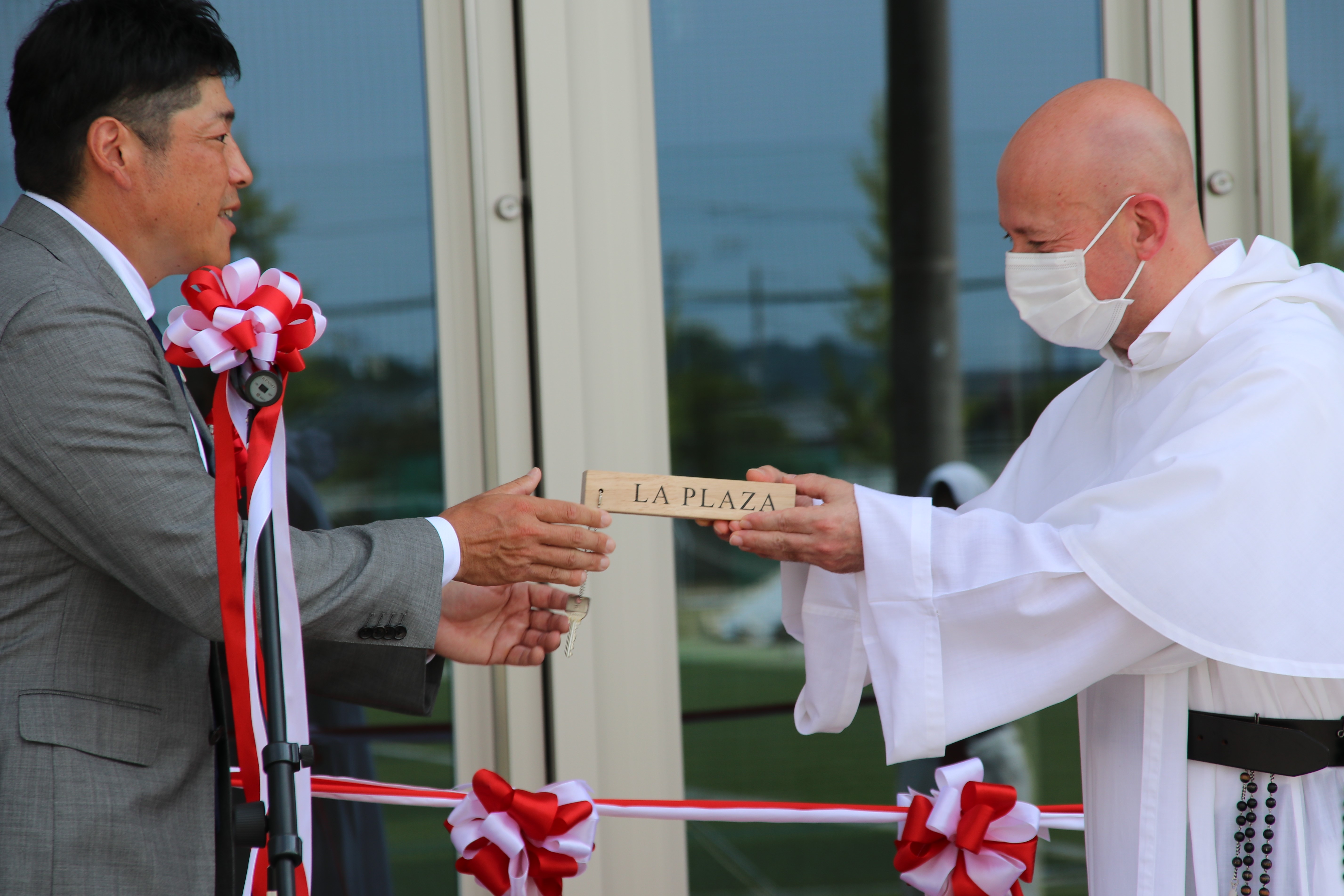 続いて、施工会社社長より理事長に体育館の鍵が渡されました。