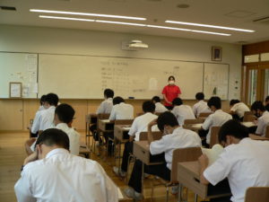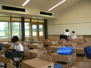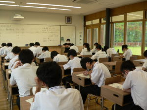 挨拶の後、中3生~高Ⅲ生は平常授業を
