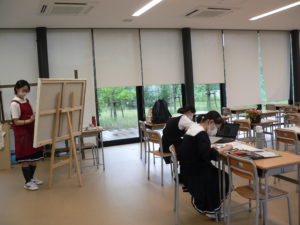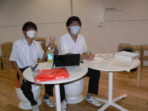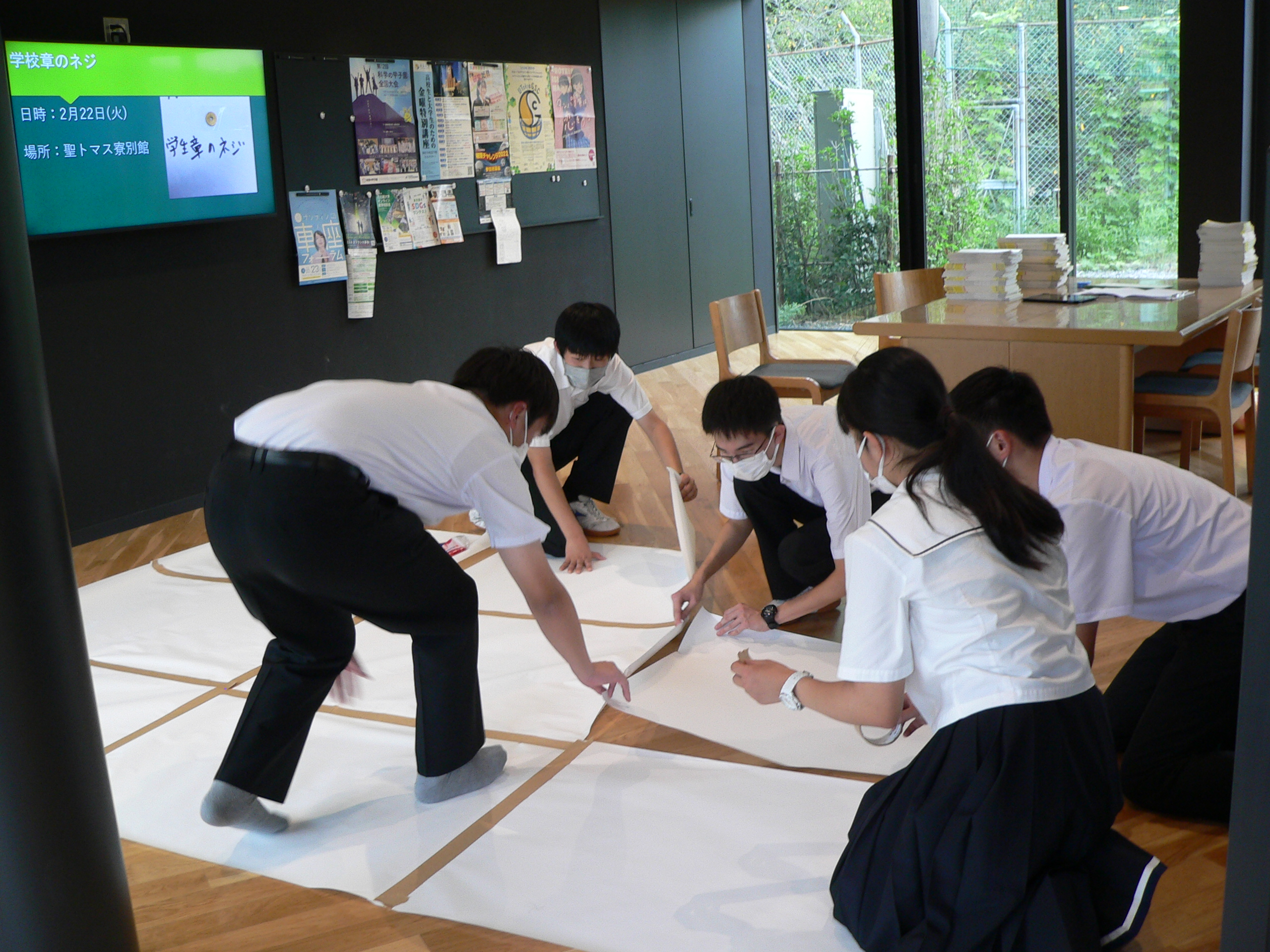 ラウンジでは何枚かの紙をつなぎ合わせて