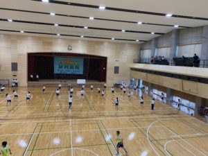 高Ⅲは本日授業です。体育館に行ってみると、まだ文化祭の名残がある中、体育の授業が行われていました。