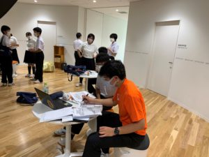 上の写真は文化祭実行委員会会計局の仕事の様子です。会計局は書類の整理や請求書、領収書の計算や管理など、これからが大変そうですね。