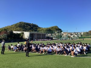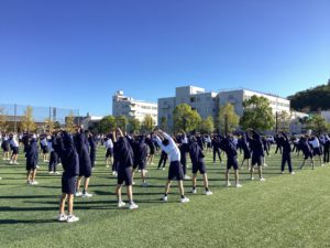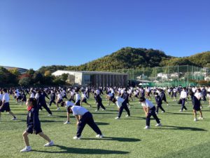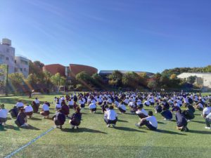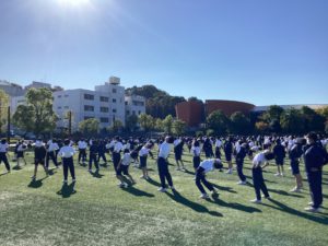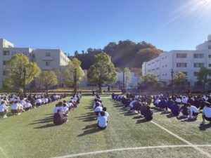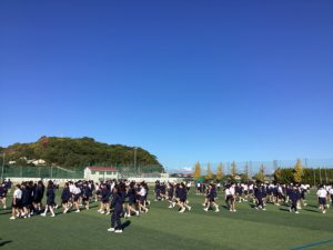 本日は快晴です。爽やかな朝日の下、開会式が行われました。