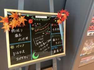本日のおすすめメニューなどがブラックボードに書かれています。