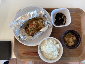 今日の日替わりランチ「さわらのホイル焼きとひじきの煮物」
