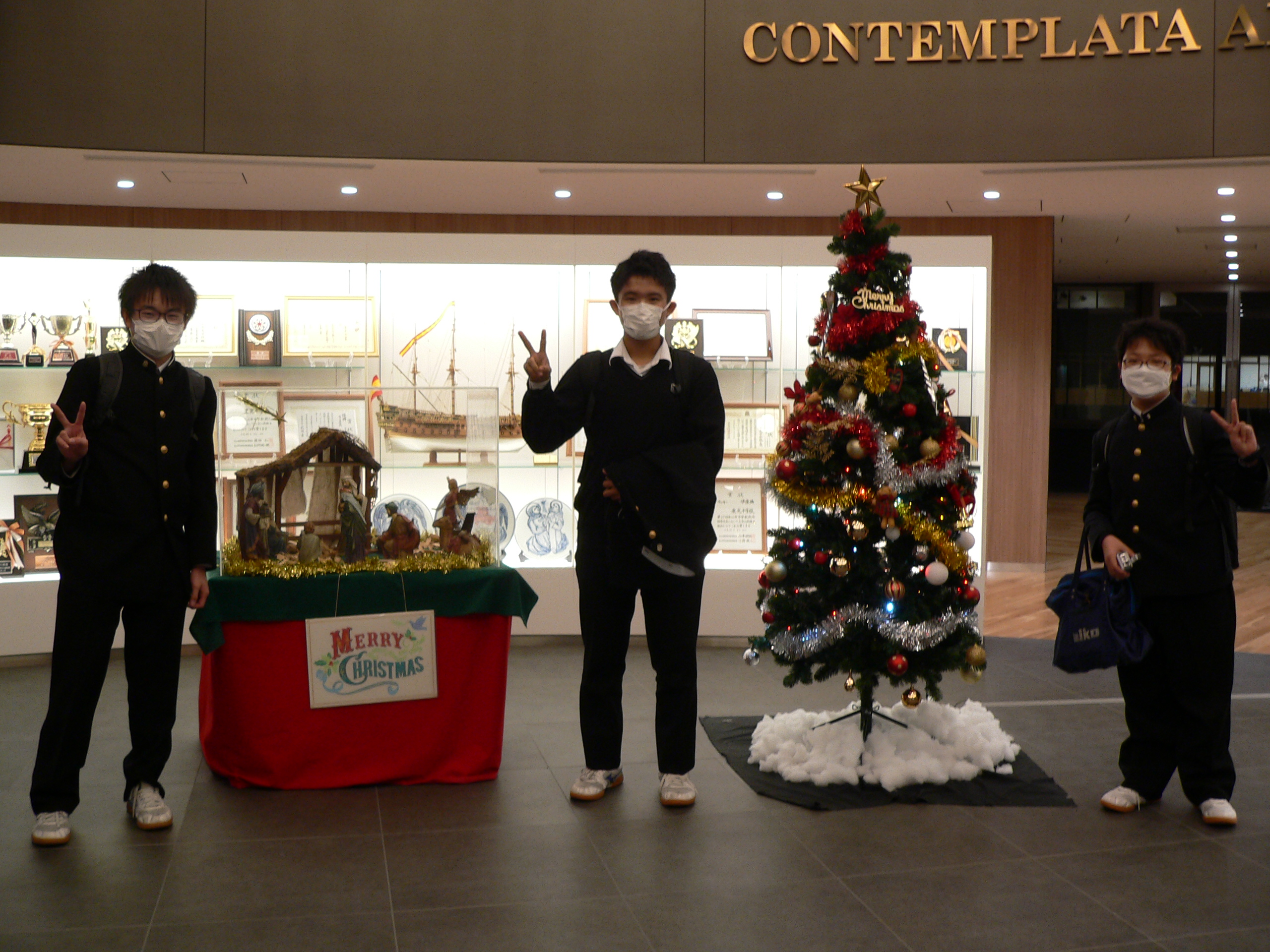 クリスマスツリーと馬小屋が今年も本部棟に