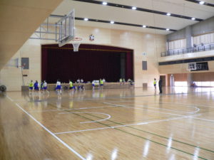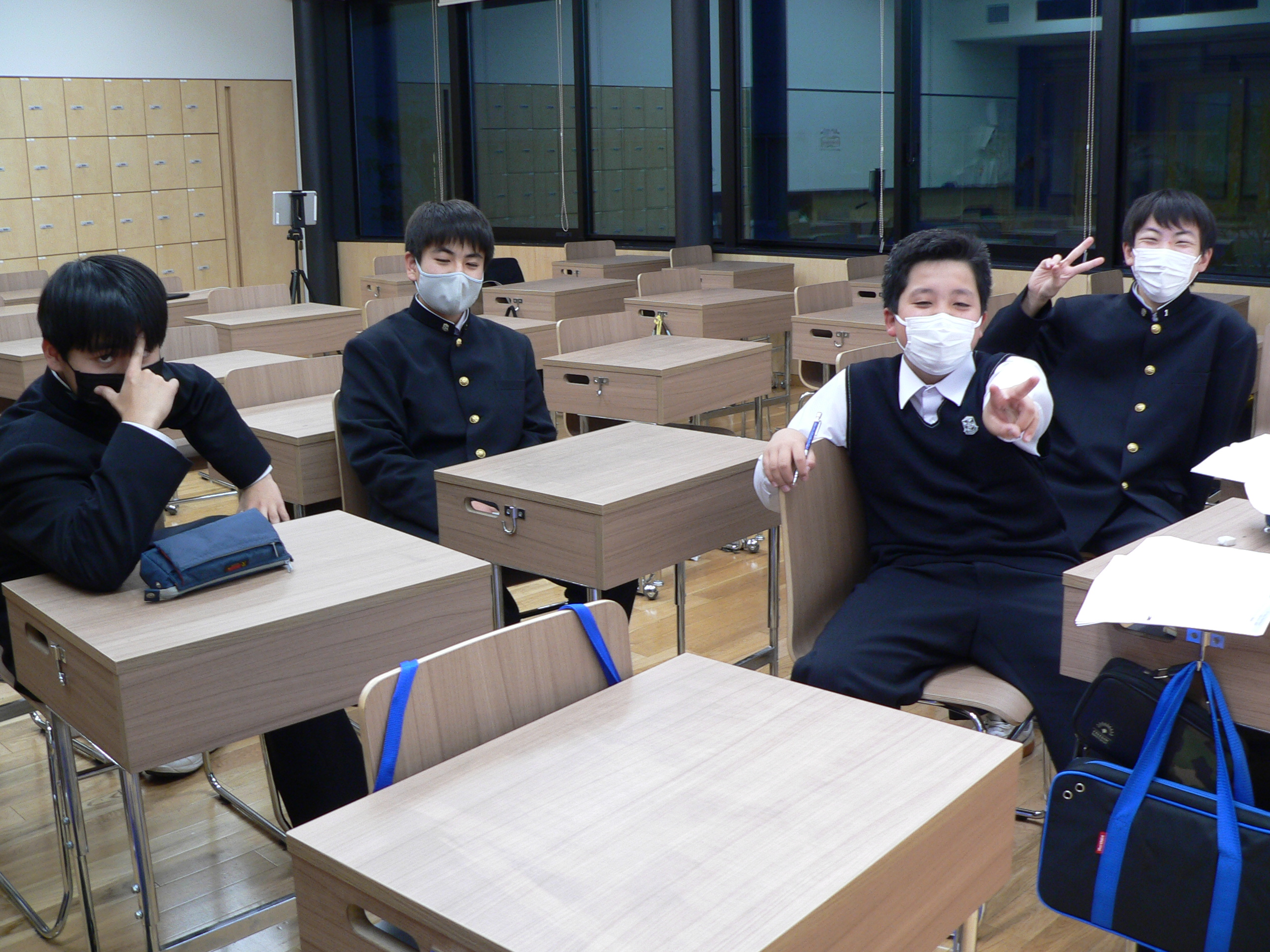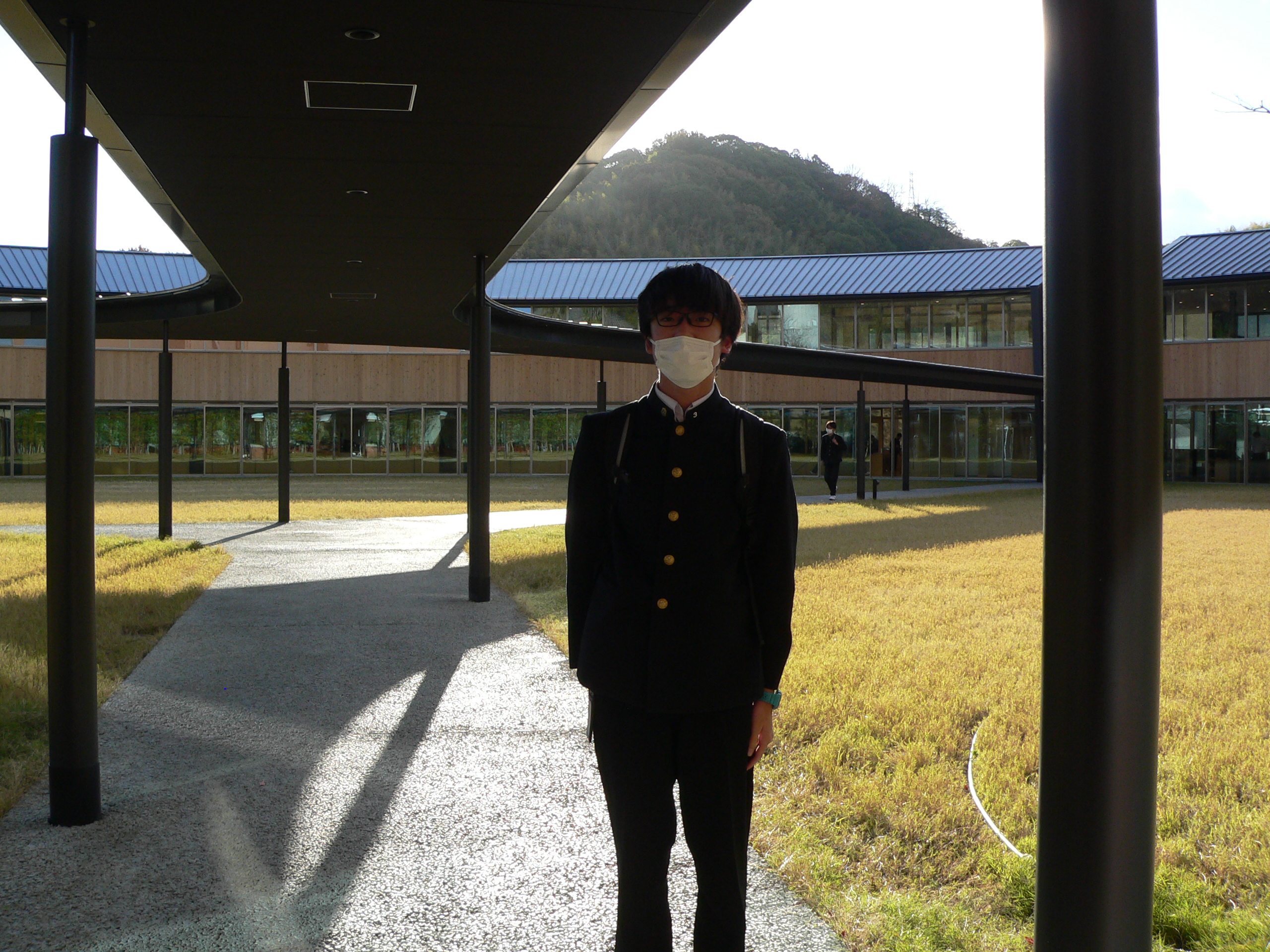 中庭を通って本部棟の靴箱に向かう生徒です。