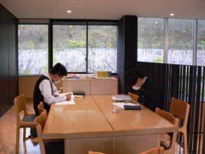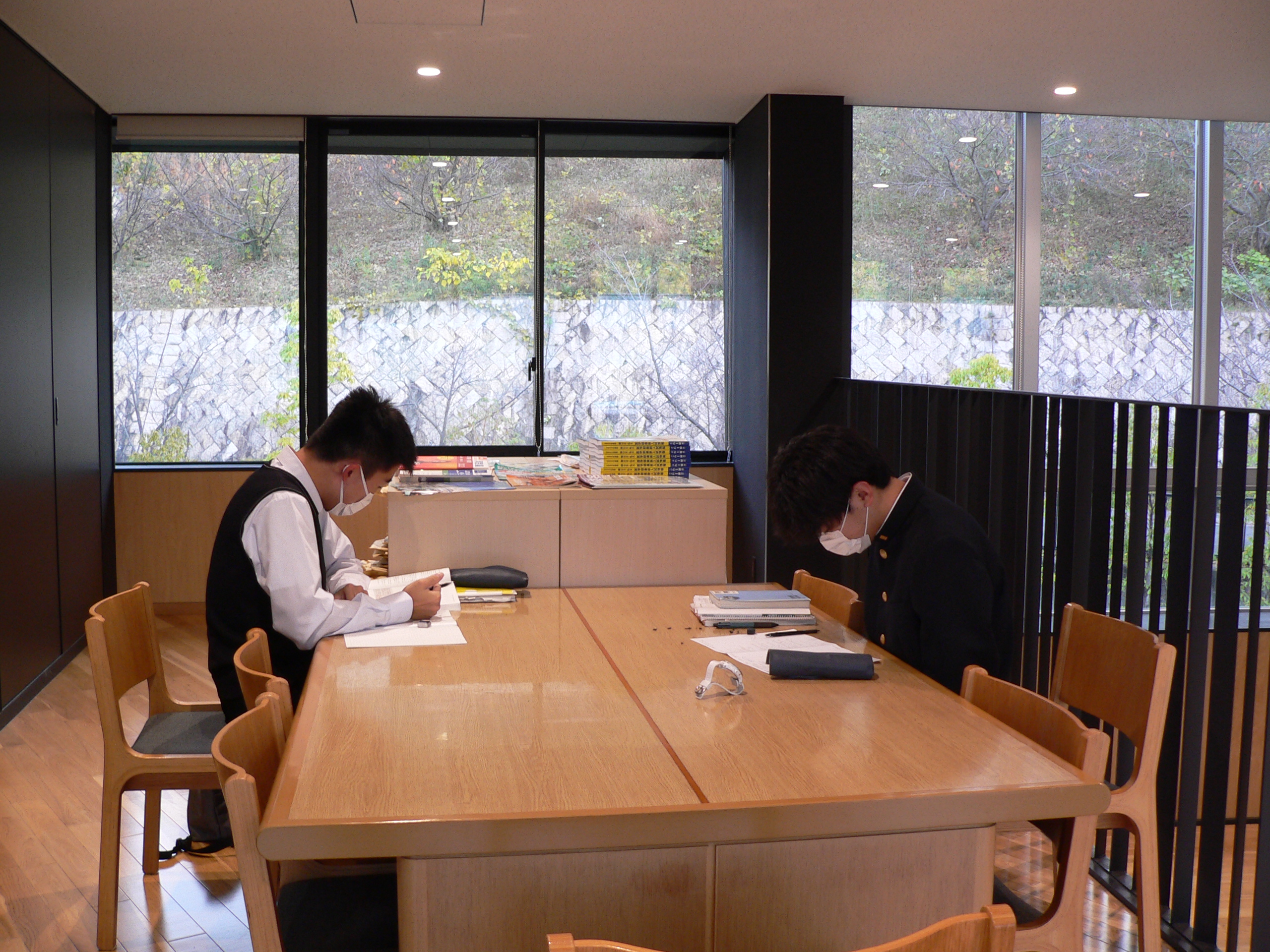 静かな高Ⅲラウンジで朝早くから学習を