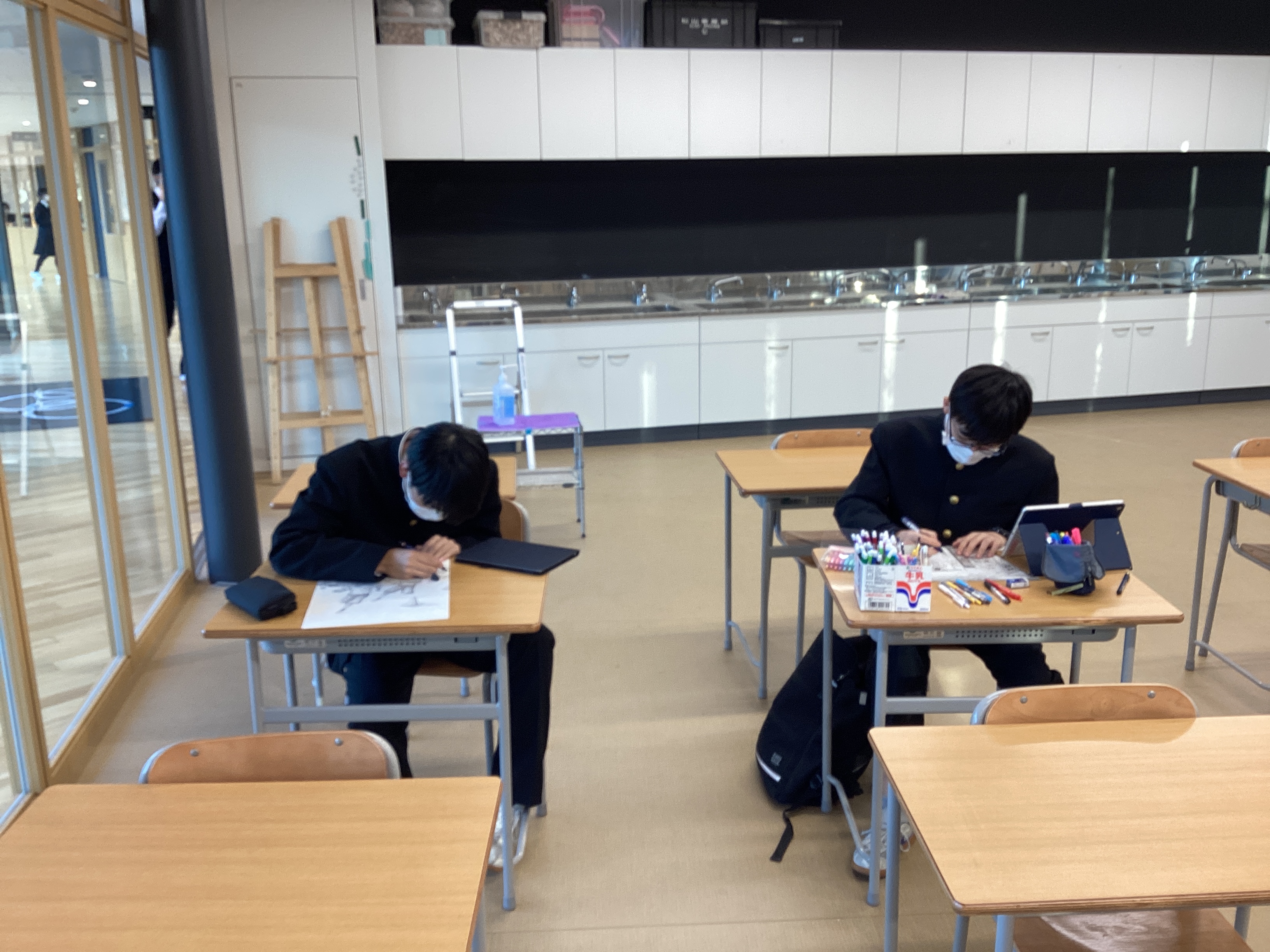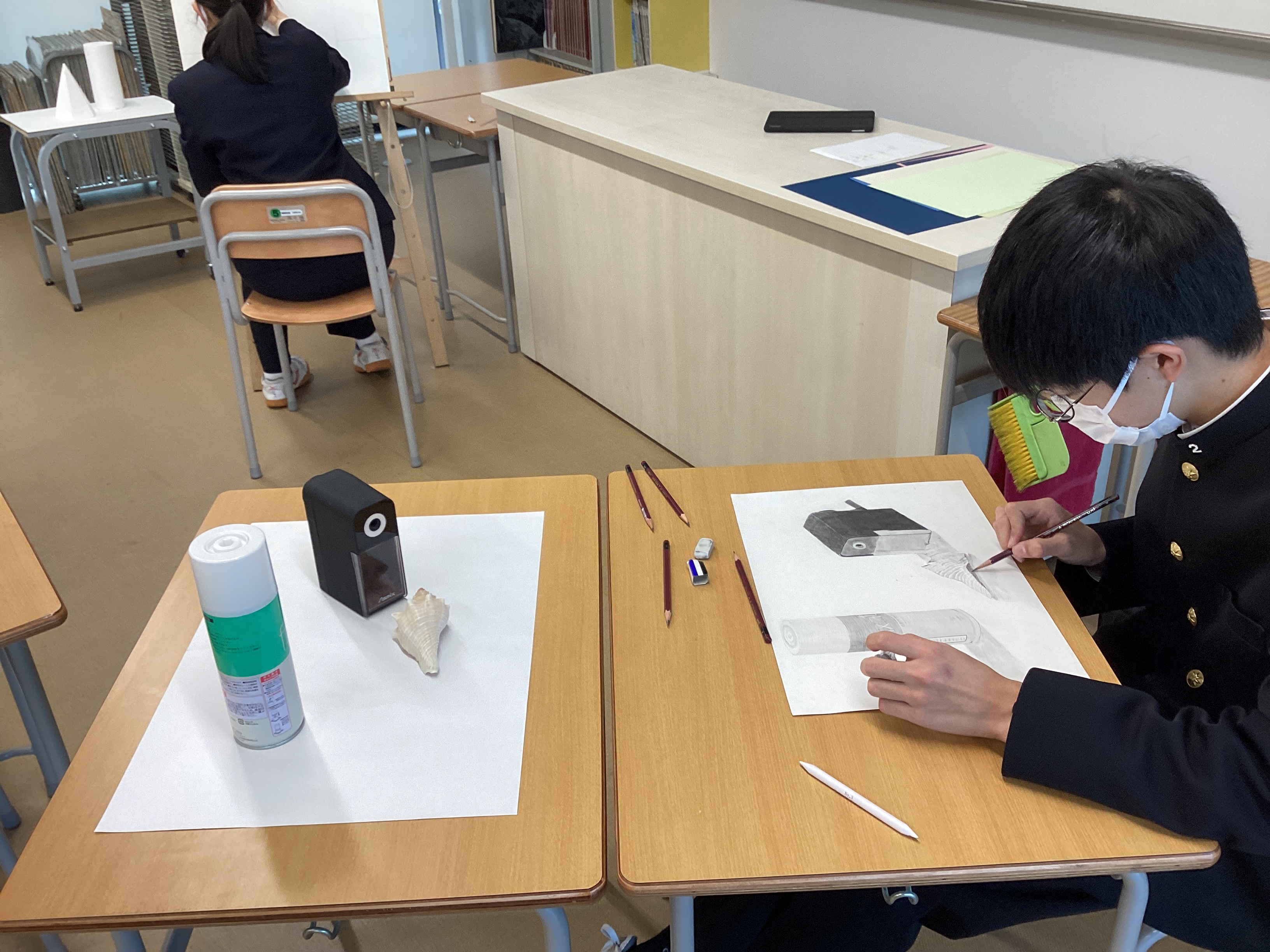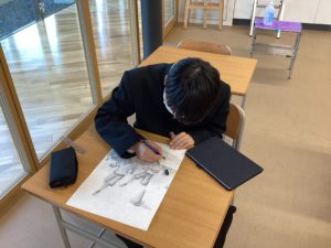 目の前のモチーフを見ながら、形を丁寧に描いています。