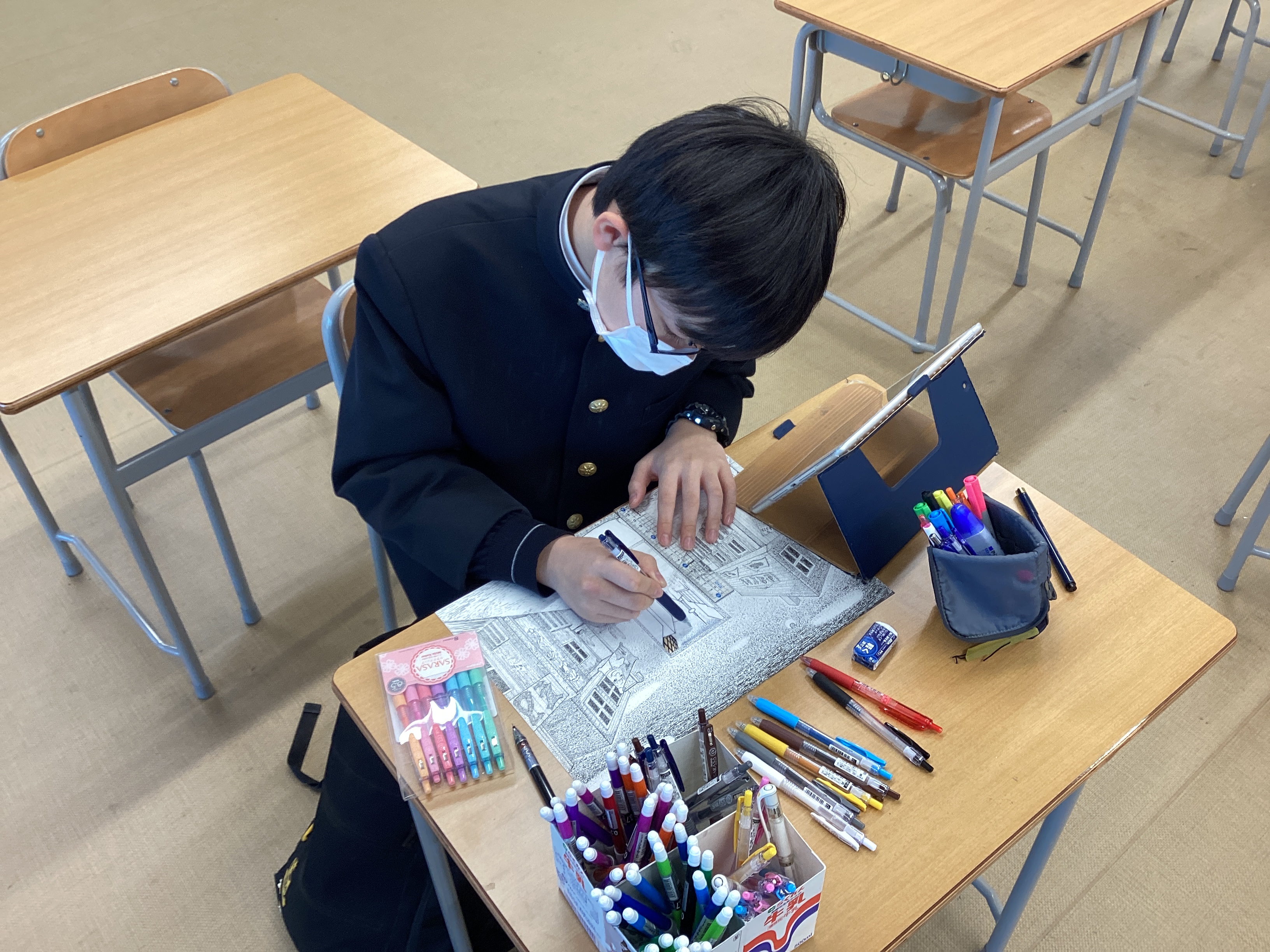 自分で想像した場面をペンやシャーペンシルで細かく描いています。