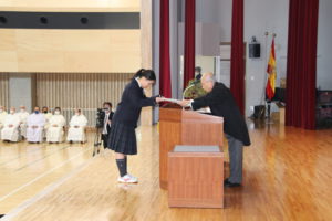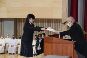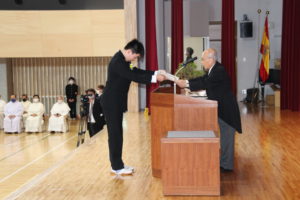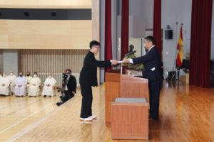 式が始まると、卒業証書授与、記念品贈呈の後に、田中忠夫奨励賞、皆勤賞6カ年、皆勤賞3カ年、体育功労賞、文化功労賞と表彰が続きます。