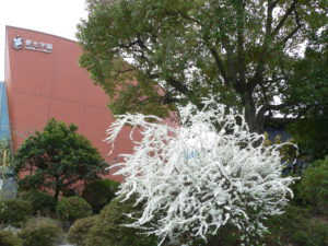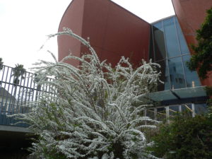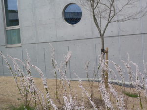 校庭のユキヤナギが満開です。