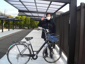 自転車通学一番乗りの生徒です。