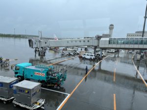 空港で朝食のサンドイッチとお茶を受け取ります。
