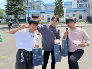 メロンを食べたり、ソフトクリームを食べる生徒もいました。