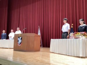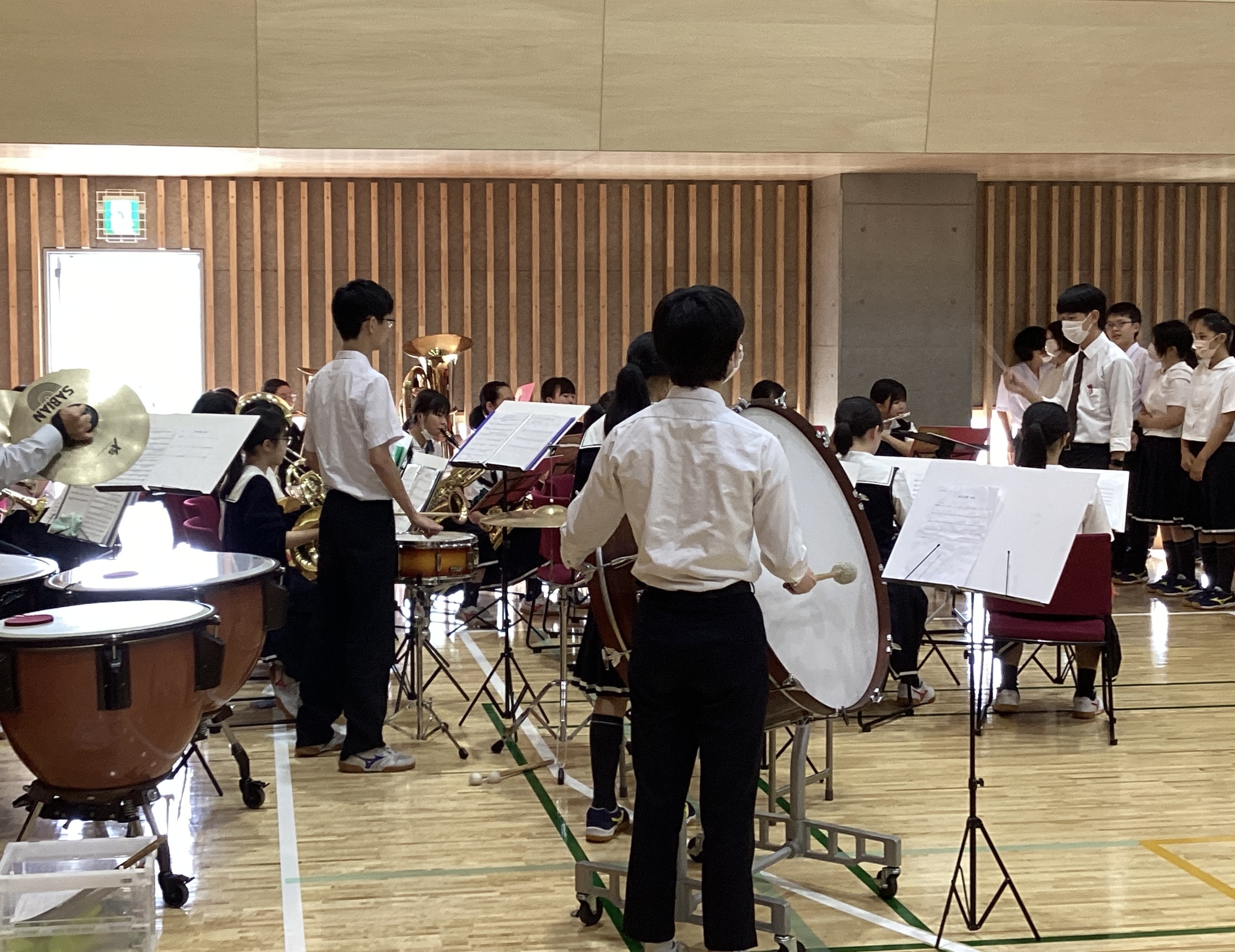 吹奏楽部による校歌の演奏に合わせ校歌を斉唱しました。