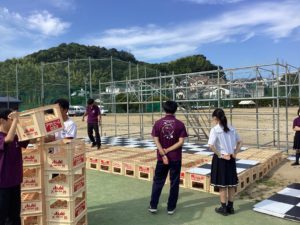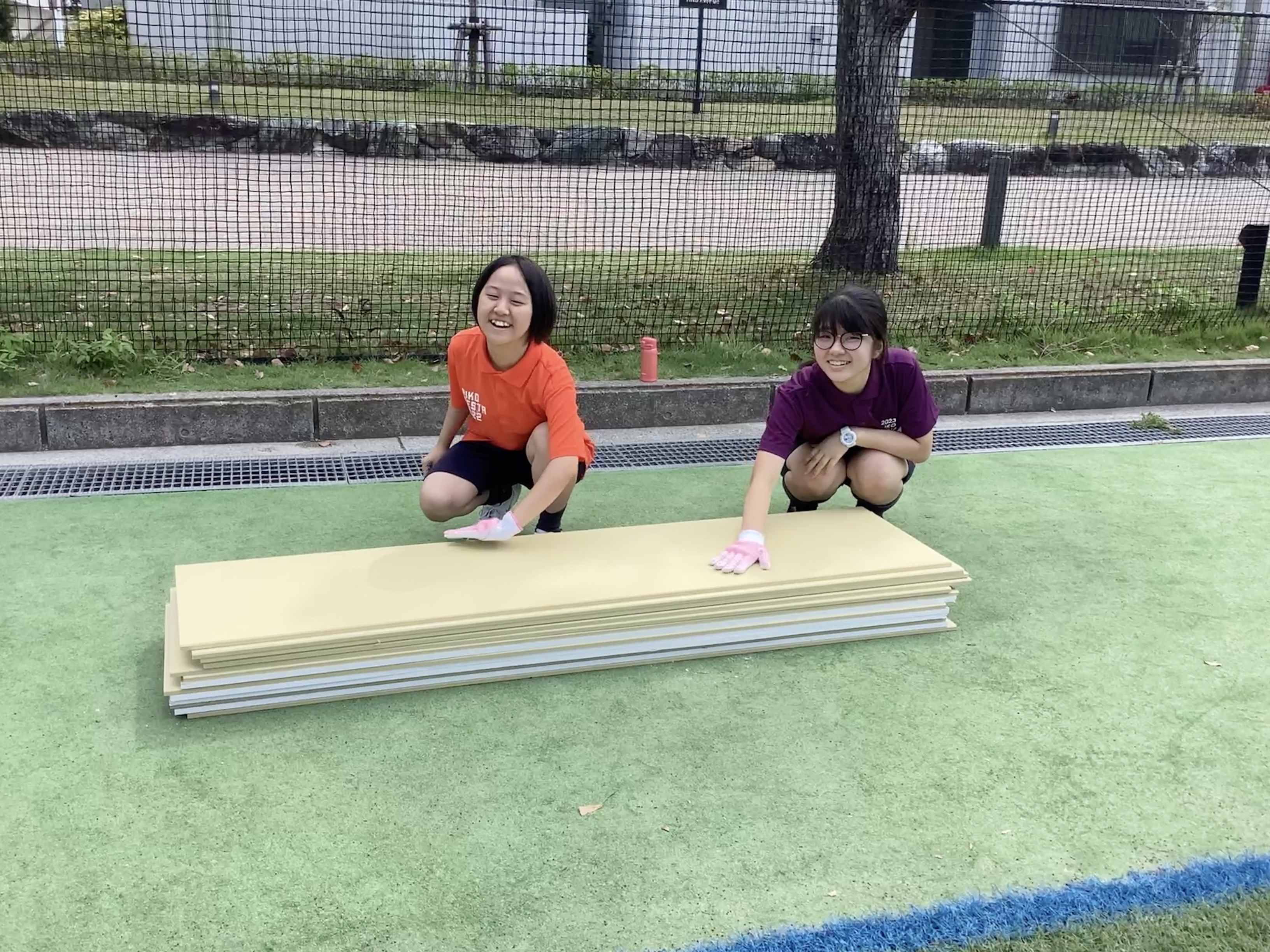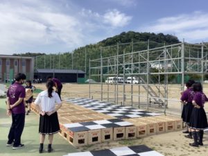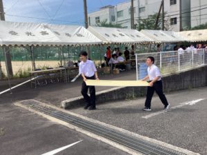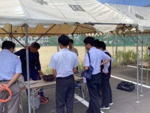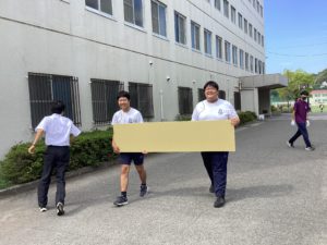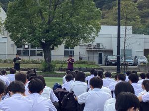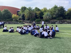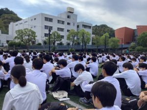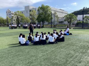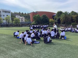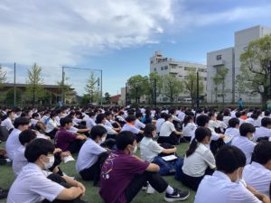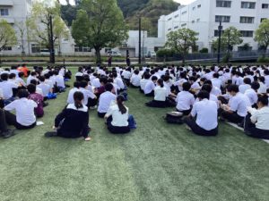 本日の、SHRは高Ⅱ以下が人工芝に集まって行われました。