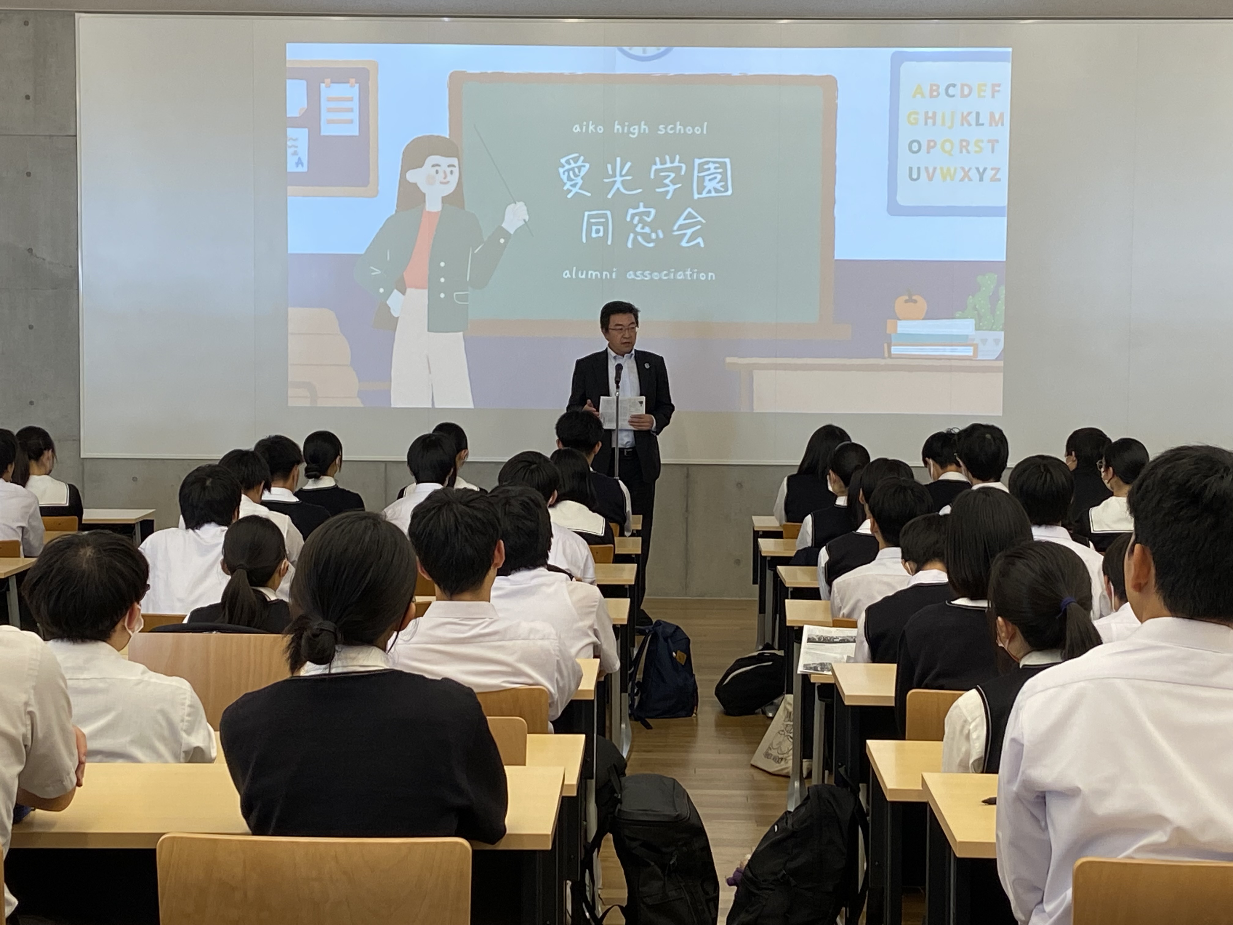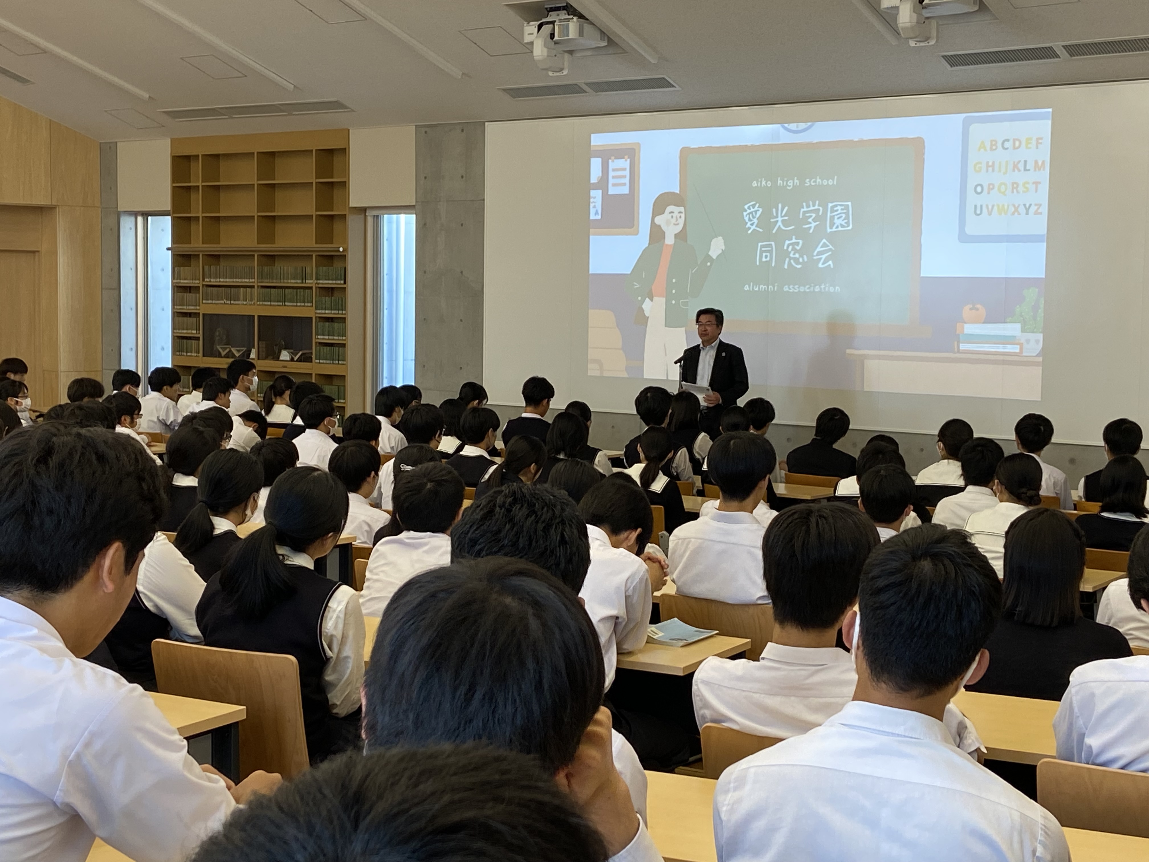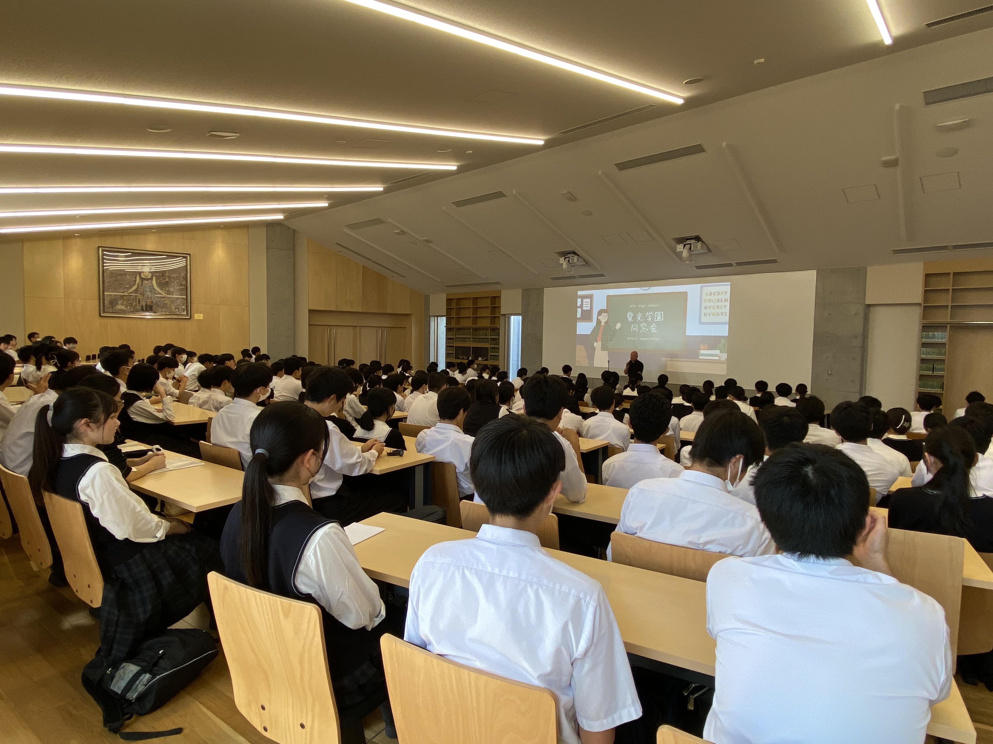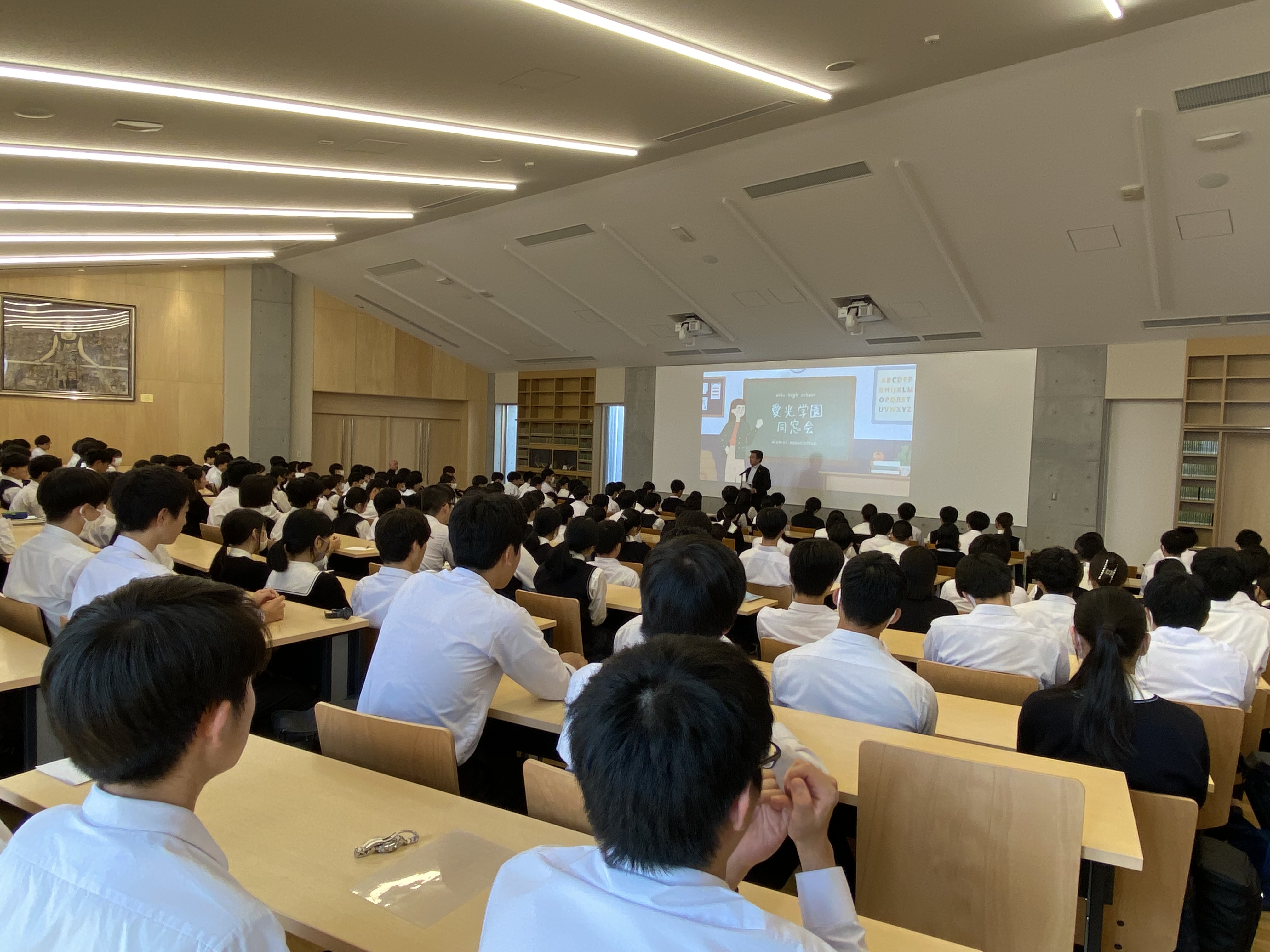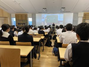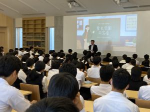 文化会館で同窓会長をお招きして、高Ⅲ生対象の