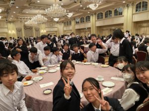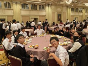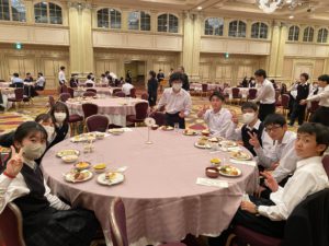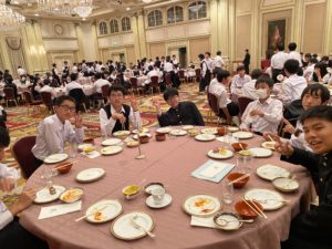1日目の最後には、宿泊先のリーガロイヤルホテルへ。 晩御飯はビュッフェ形式。普段とは違う環境で、友達とご飯を食べながら色々な話ができたと思います。