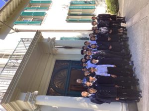 大使館では、始めに大使のお話を聞き、その後大使館のお庭でシェフ手作りのお菓子をいただきました。