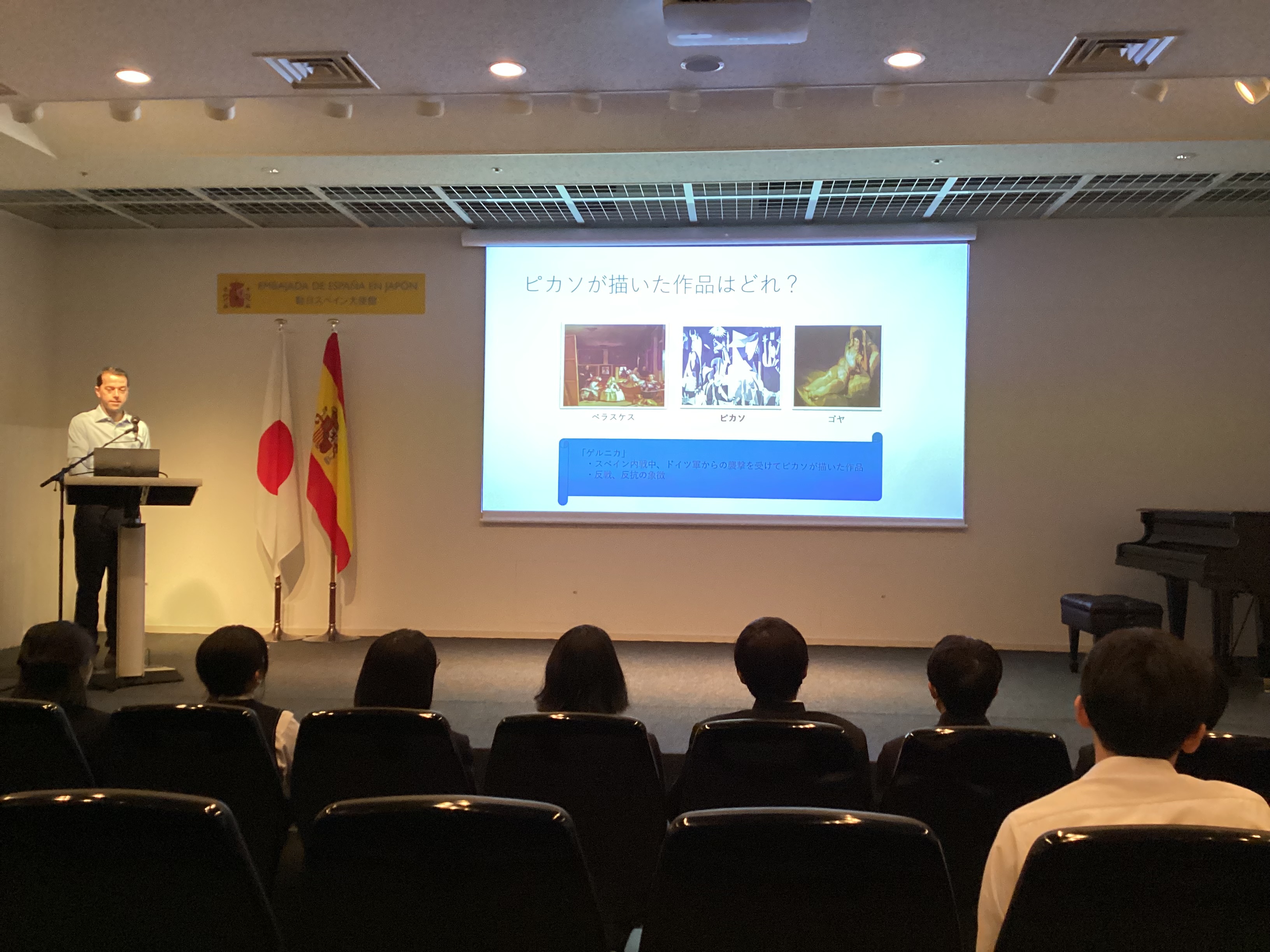 大使館内を案内していただき、先行公開で展示を見たり、クイズ形式でスペインについて学んだりと特別な時間を過ごしました。