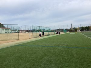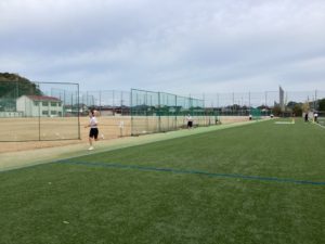 まずは、人工芝コートの周りにあるオムニの部分(400m弱)を5周走りました。