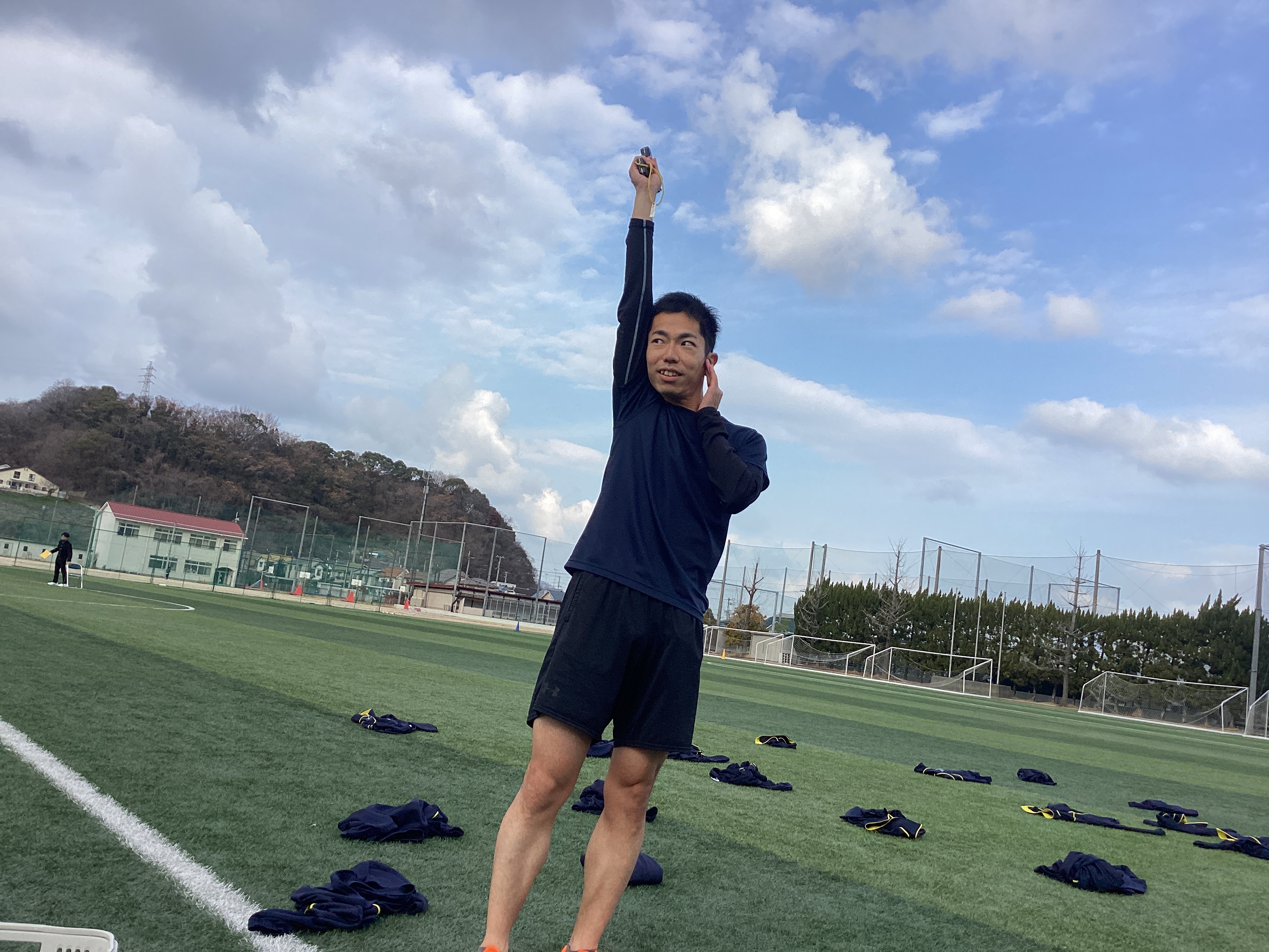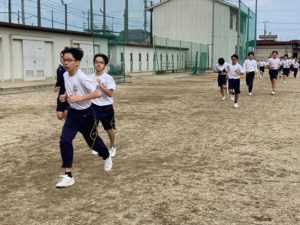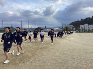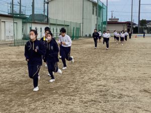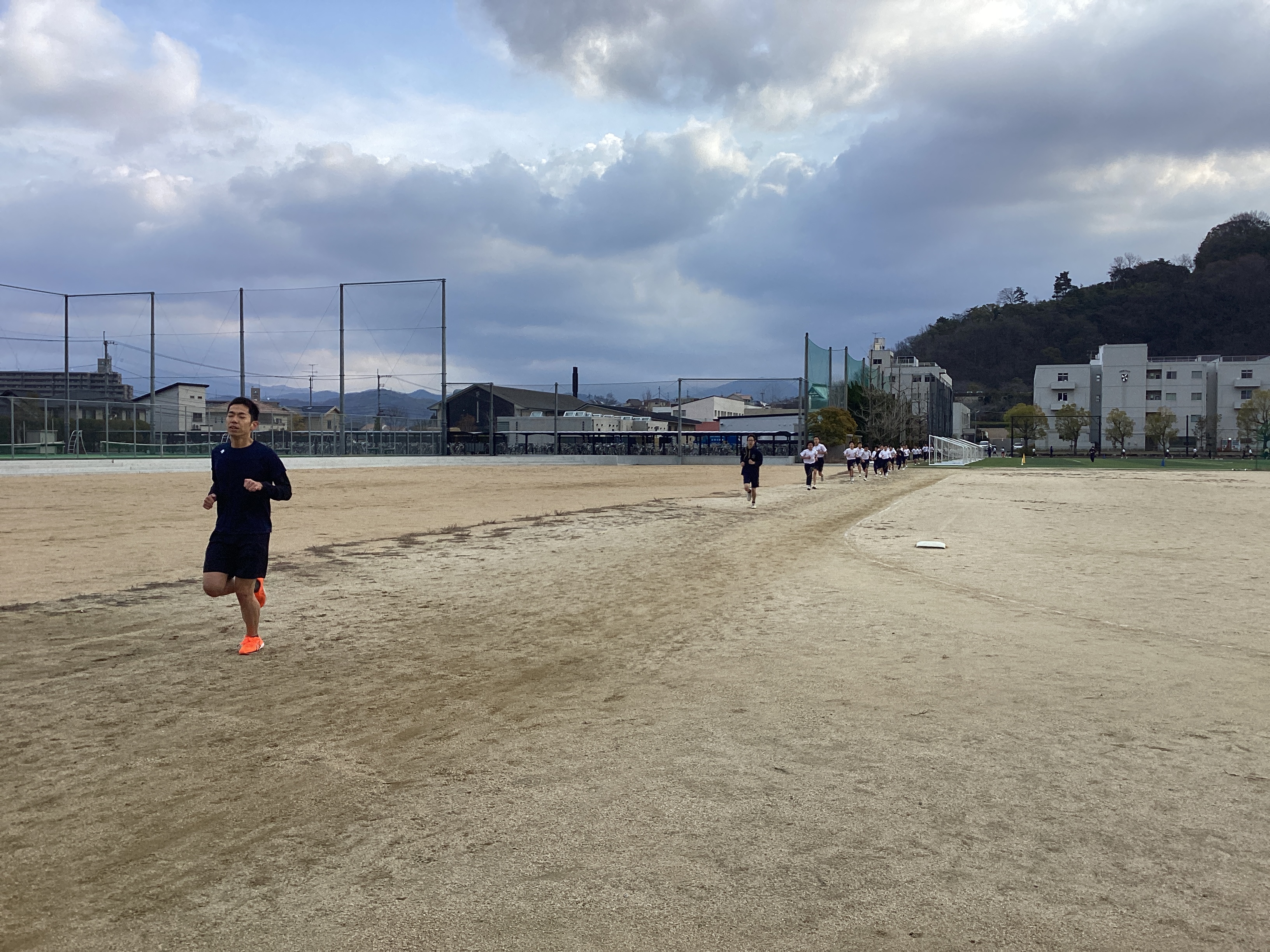 芝のグラウンドを1周したあとは、土のグラウンドのほうへ行き、外周4周します。