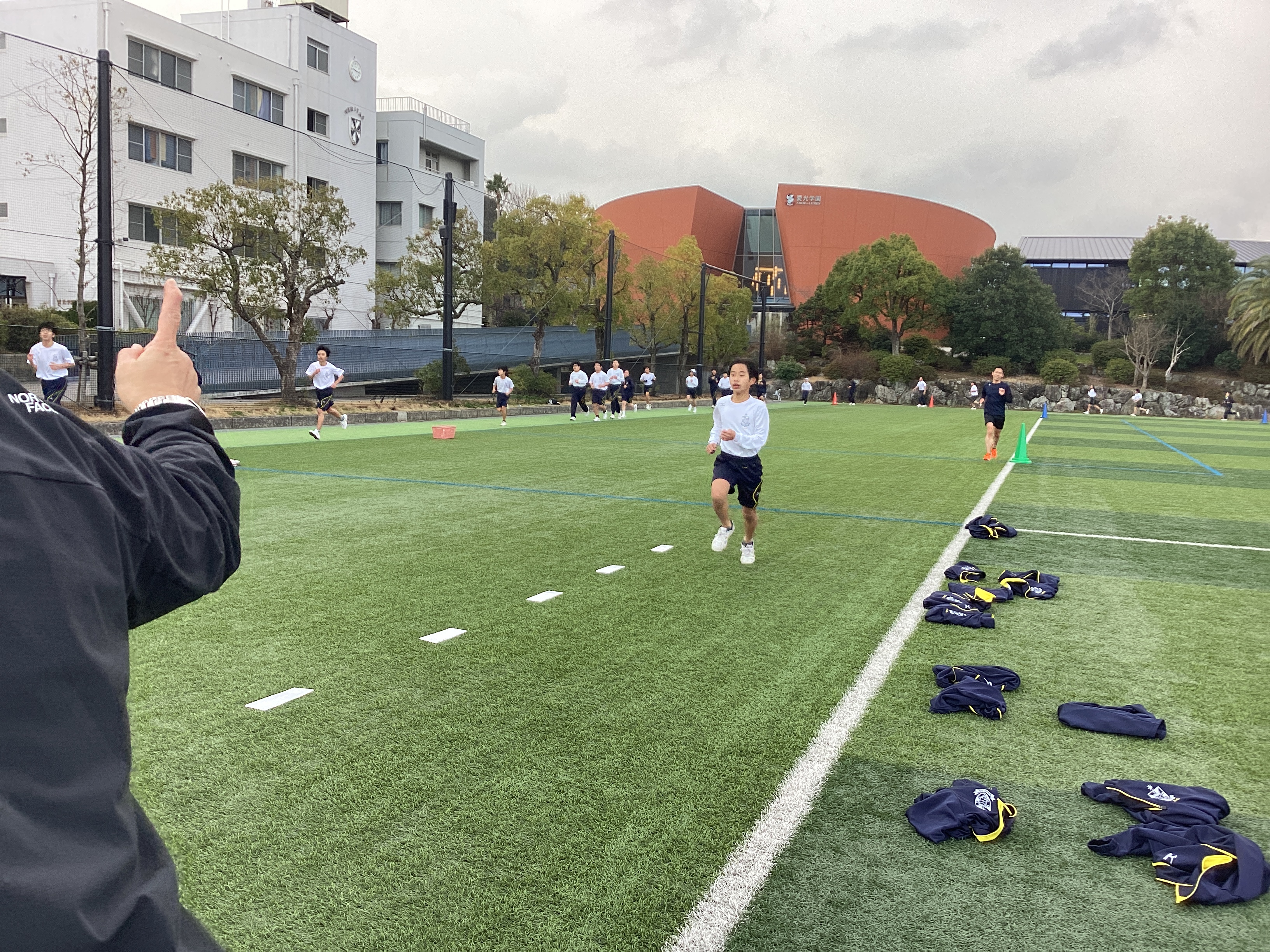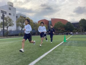 最後に芝のグラウンドを1周してゴールです!合計3km!よくがんばりました!