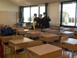 連休明けの月曜日、朝の中学棟を訪問しました。