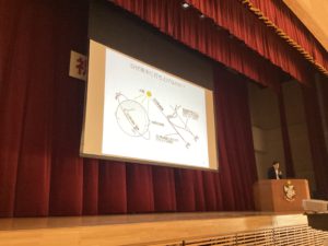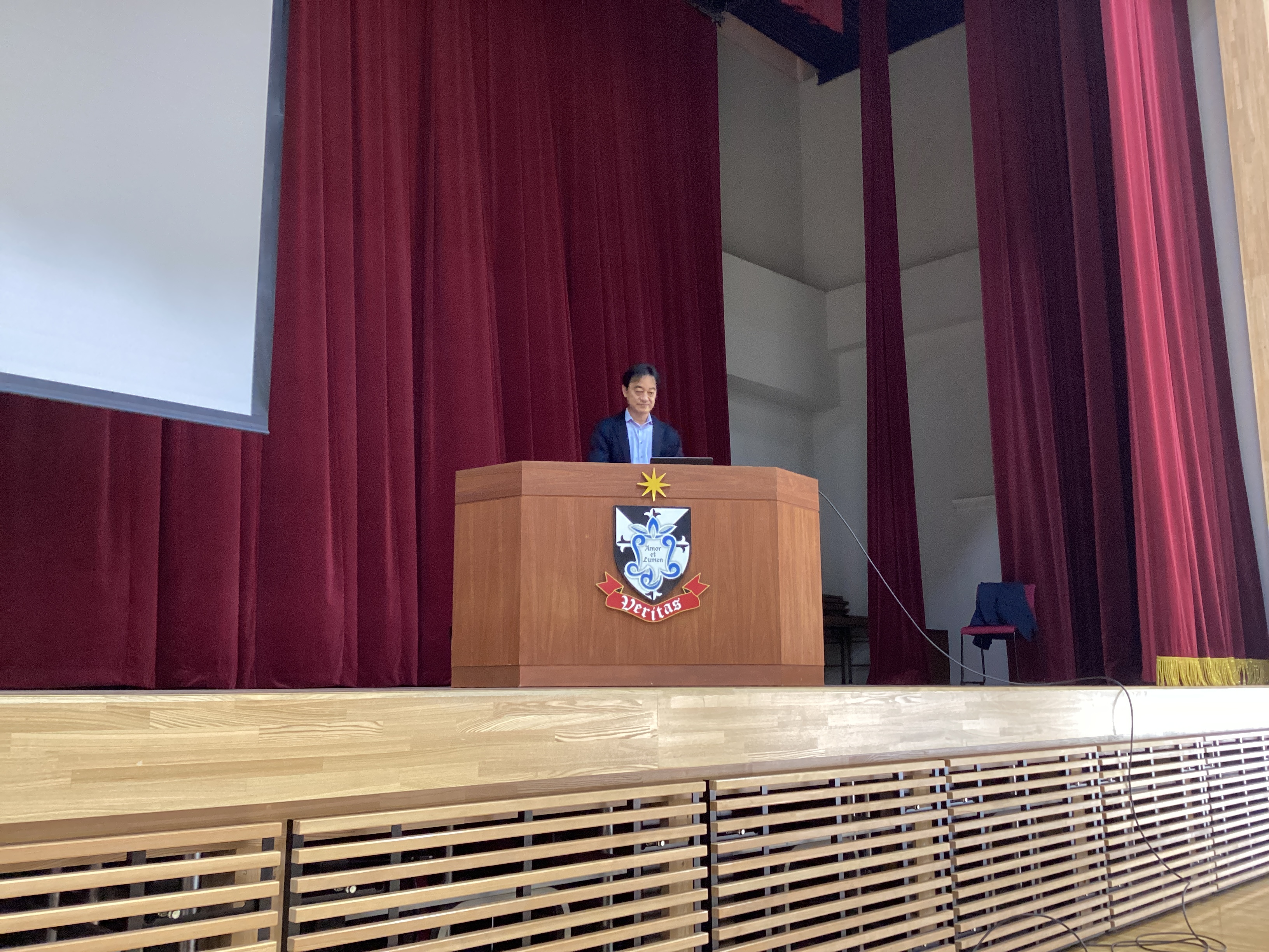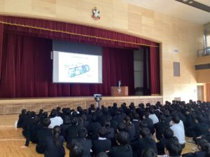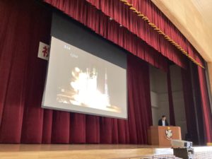 2/27(火) 7時間目のLHRにて、慶應義塾大学システムデザイン・マネジメント研究科教授 (本校30 期生)のSさんが、「大きく変わり始めた宇宙開発:理系・文系に関わらない将来の仕事としての選択肢」というテーマで講演をしてくださいました。