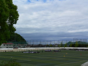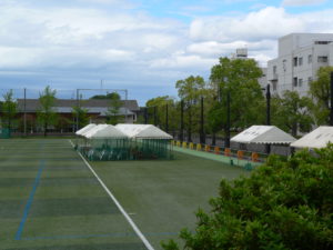 昨日、グラウンドにはテントが張られ、生徒たちが