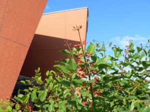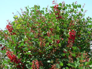 デイゴの花が本部棟前と体育館横で咲いています。