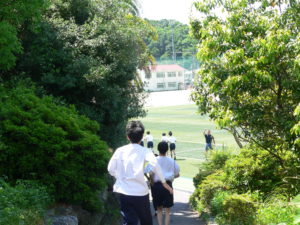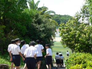 体育の授業に向かう中学生です。