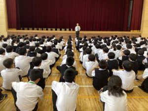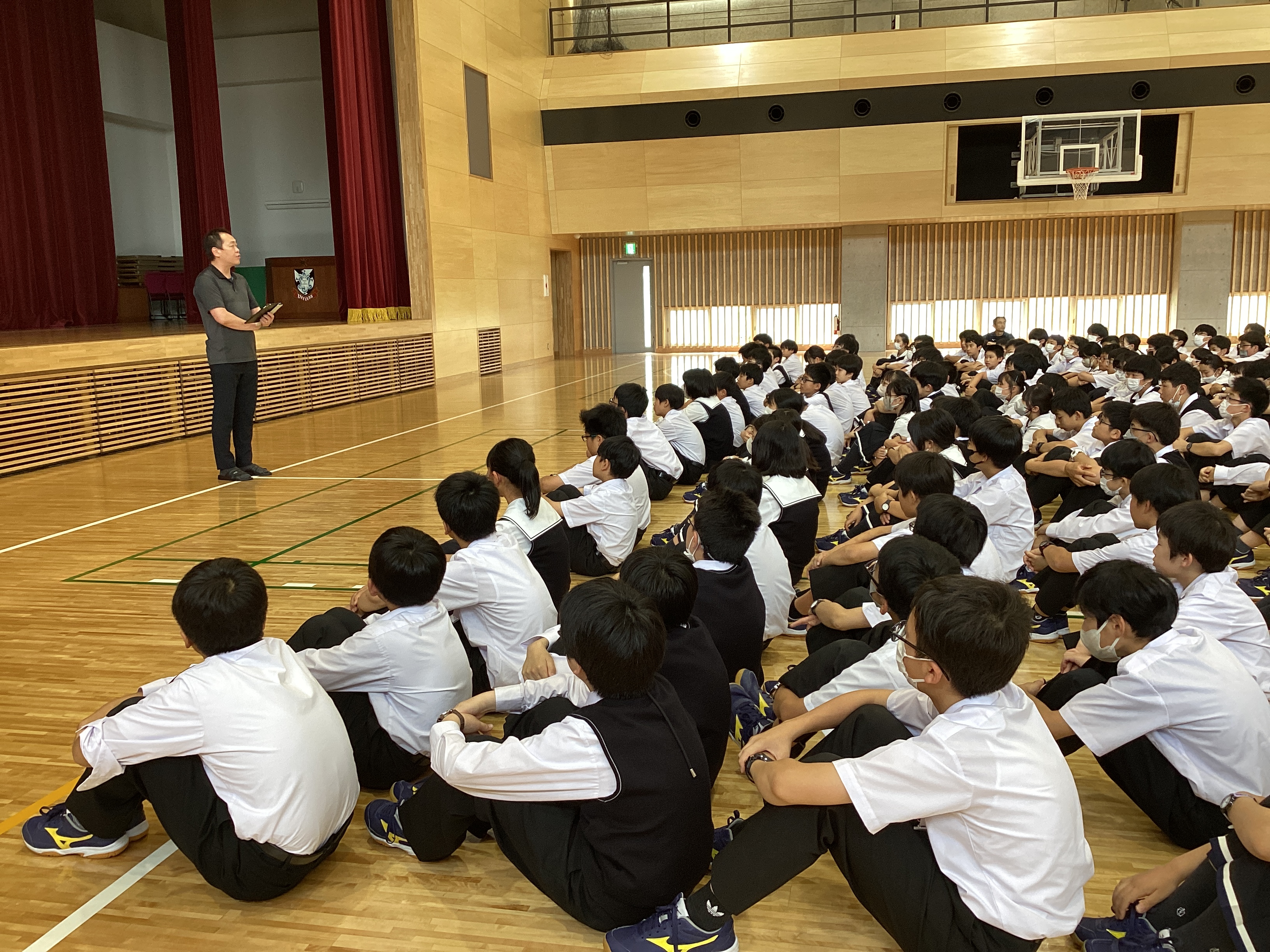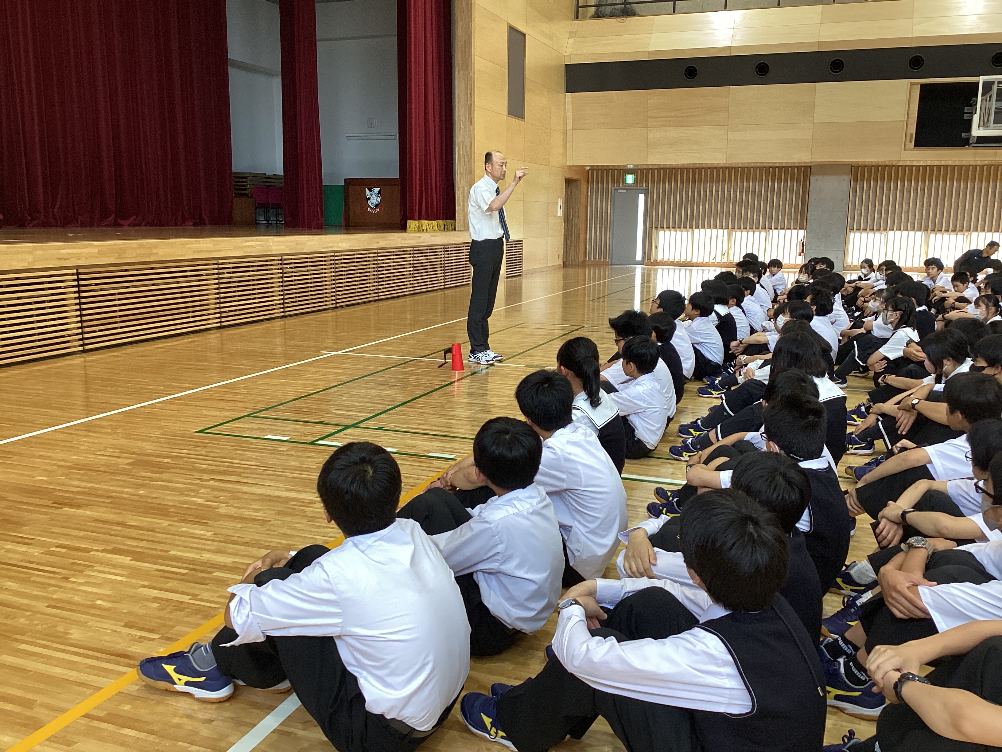 生徒の皆さんも引率の先生も楽しい宿泊研修となるよう、周りに迷惑をかけないよう心配りをしながら行動し、充実した宿泊研修にしましょう!とお話されました。