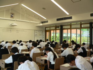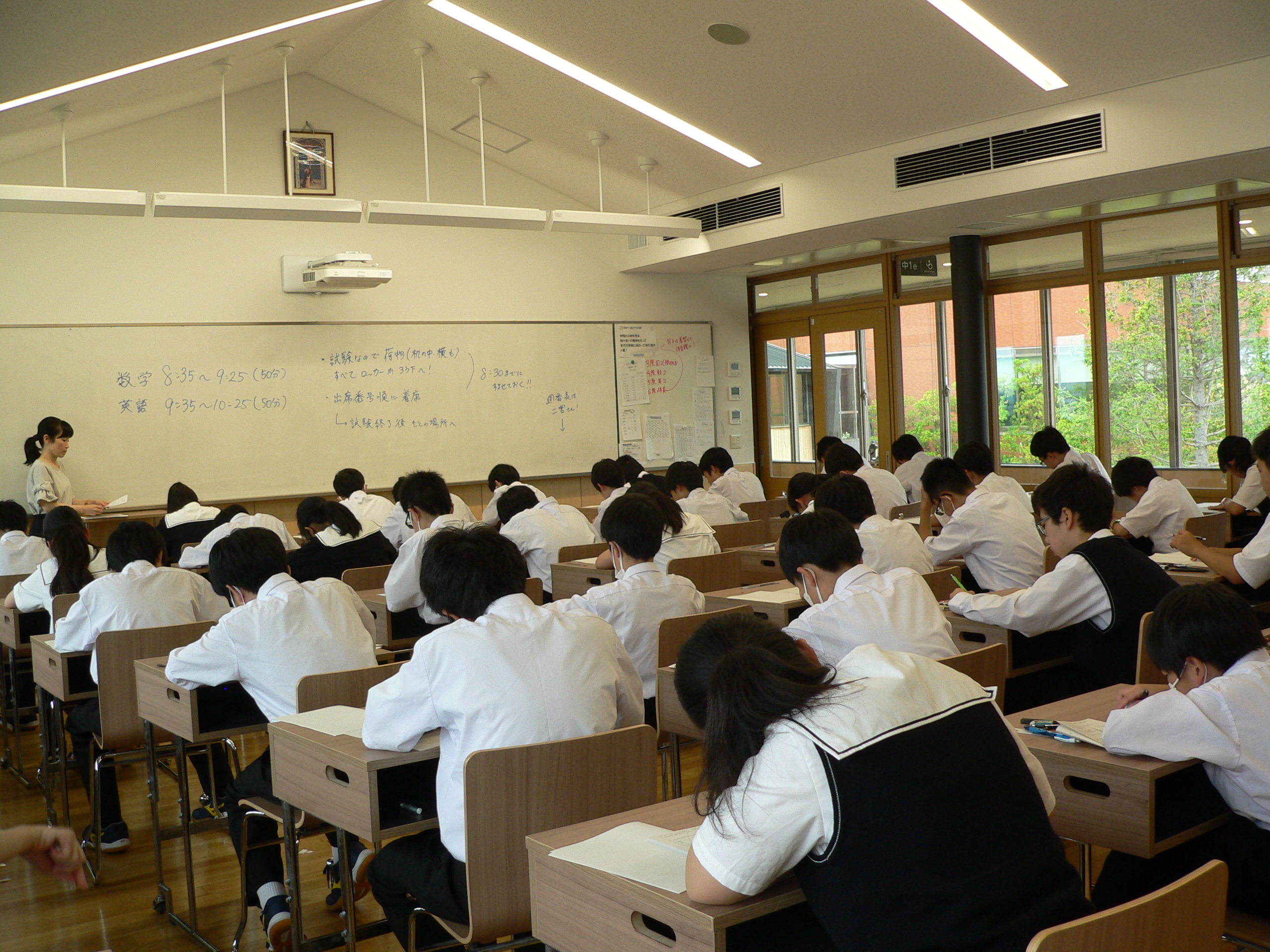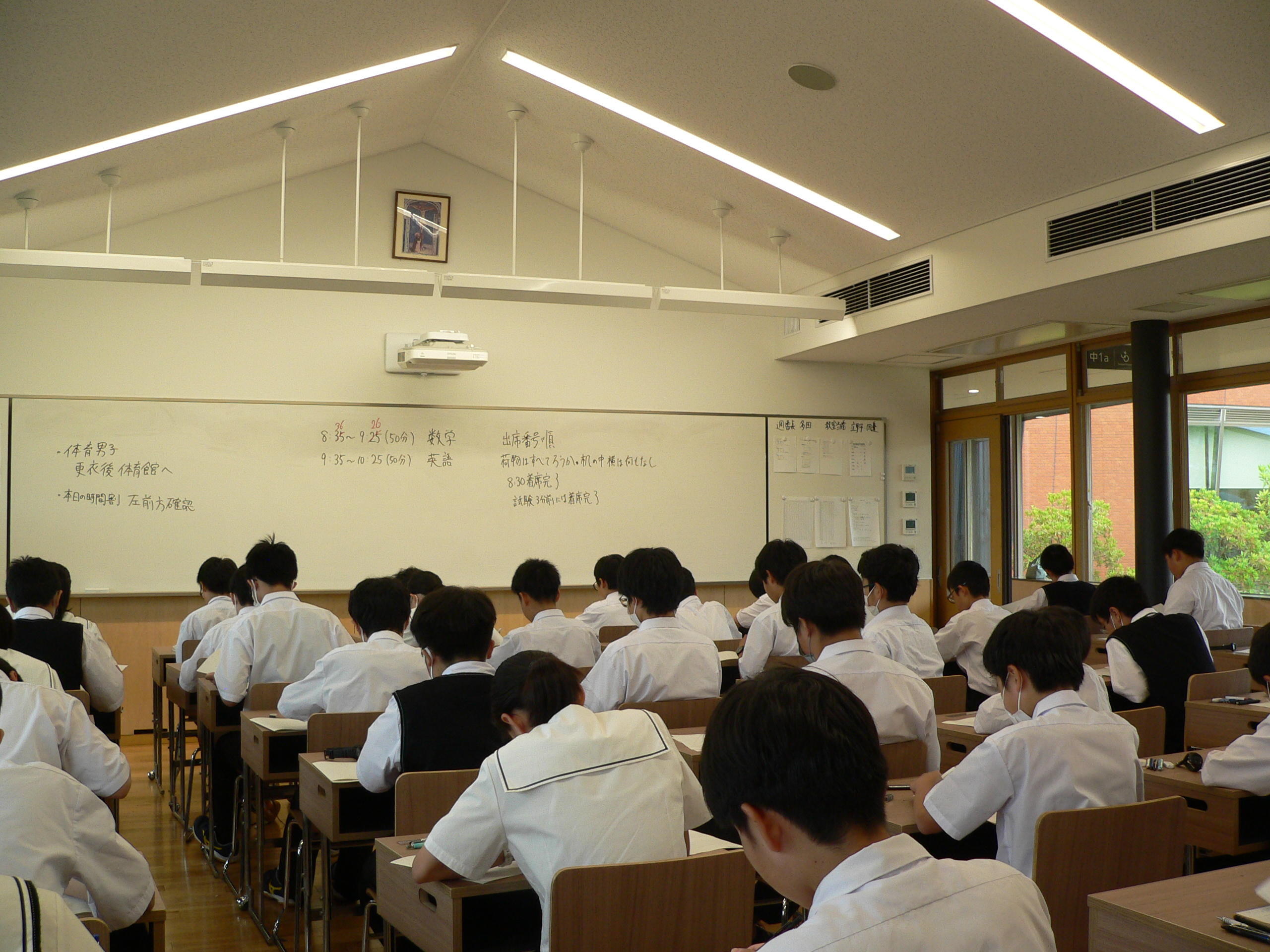 高Ⅱ生は3教科テスト、高Ⅲ生は授業です。