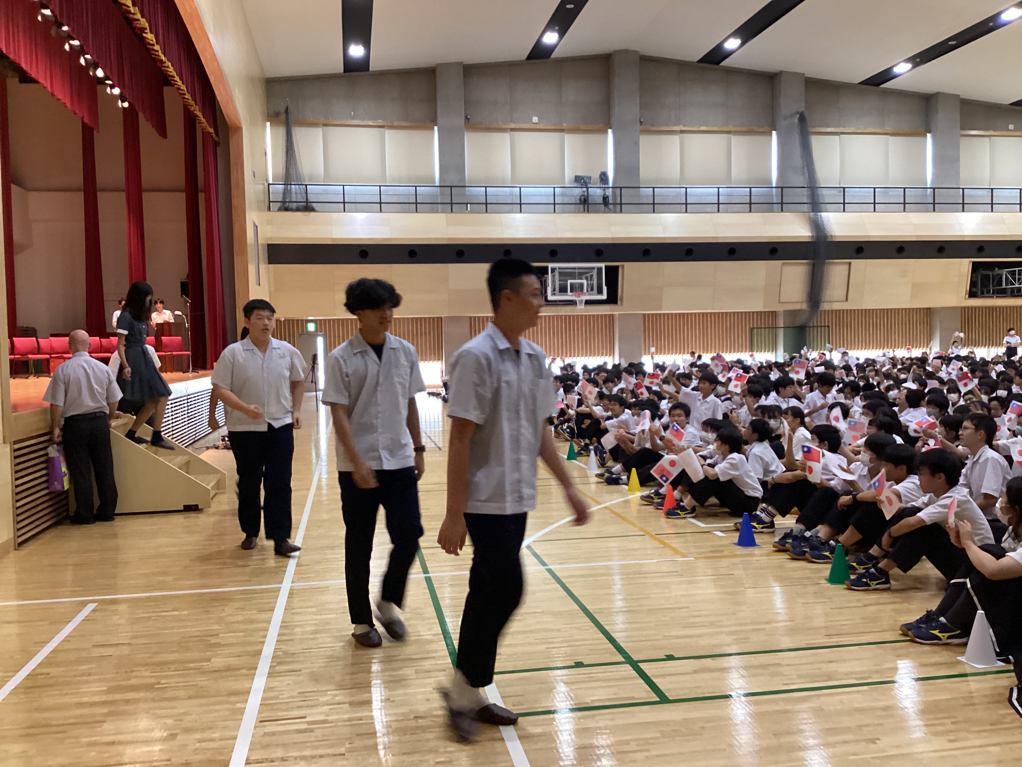 生徒の皆さんが、日本語や英語で挨拶と自己紹介をしてくれました。早速、名前を覚えた愛光生もいたようです。