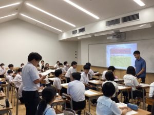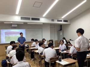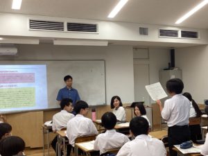 できあがった作品を、さっそく生徒に朗読してもらい、田丸さんから講評を頂きました。