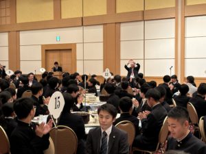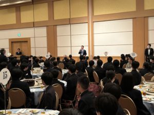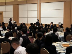 夕食は2期から62期までの卒業生達と懇親会を行いました。仕事の事であったり愛光時代の話で盛り上がり、終盤はほとんどの生徒が席を立ち上がっていろんな卒業生の話を聞くことが出来ました。