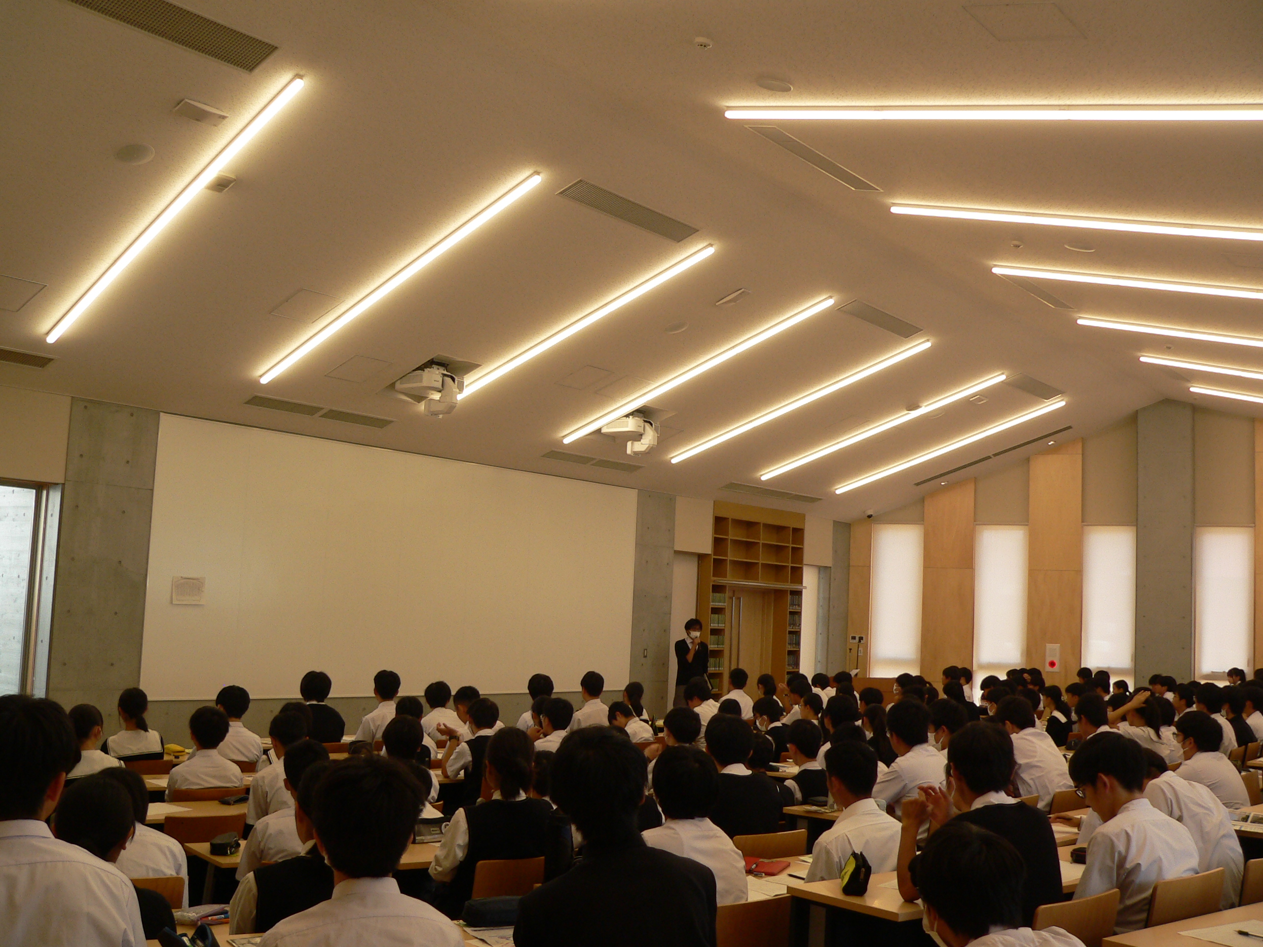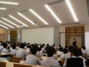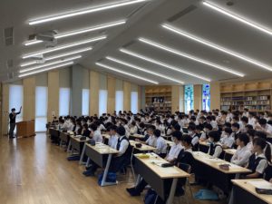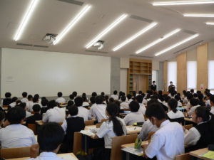 3日間の研修旅行を終え、閉校式を行いました。閉校式では教頭先生からの言葉と、学年部長のお話と共に振り返りを行いました。そのあとは、コース別研修でお世話になった卒業生の働いている企業や大学・研究所などで学んだことの感想を書き、研修旅行の反省のアンケートを行いました。