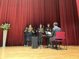 今年度は、献花の際、卒業生が演奏をしてくれました。