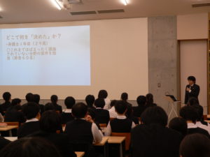 講師は同窓生の弁護士で、演題は「『選択』と『決定』を